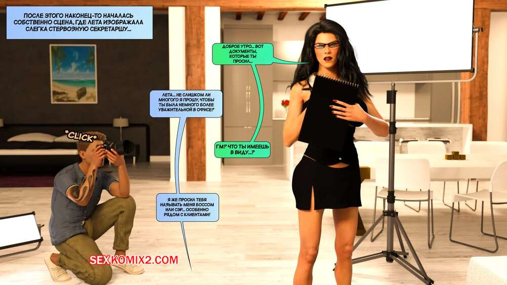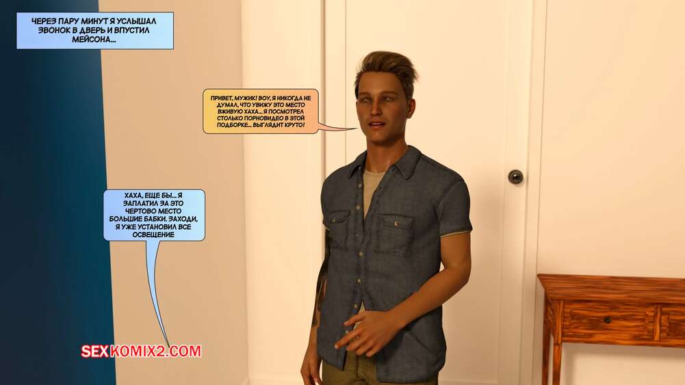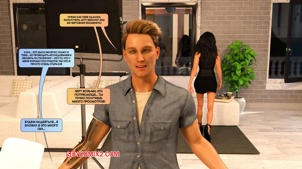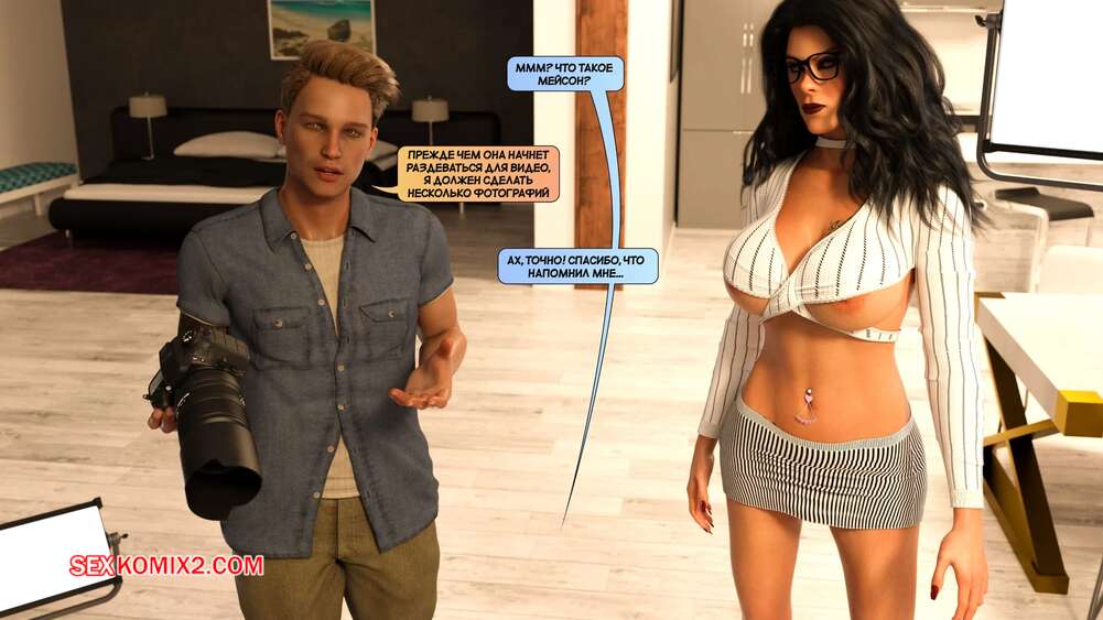 Порно комикс Новые соседи. Часть 39. The New Neighbors. Antalore42 Домой к Мейсону и Аннабель приехала горячая брюнетка для съемок. Она соблазнила Адаама шикарным телом и отсосала его член, после чего дала ему себя выебать и кончить ей на лицо.