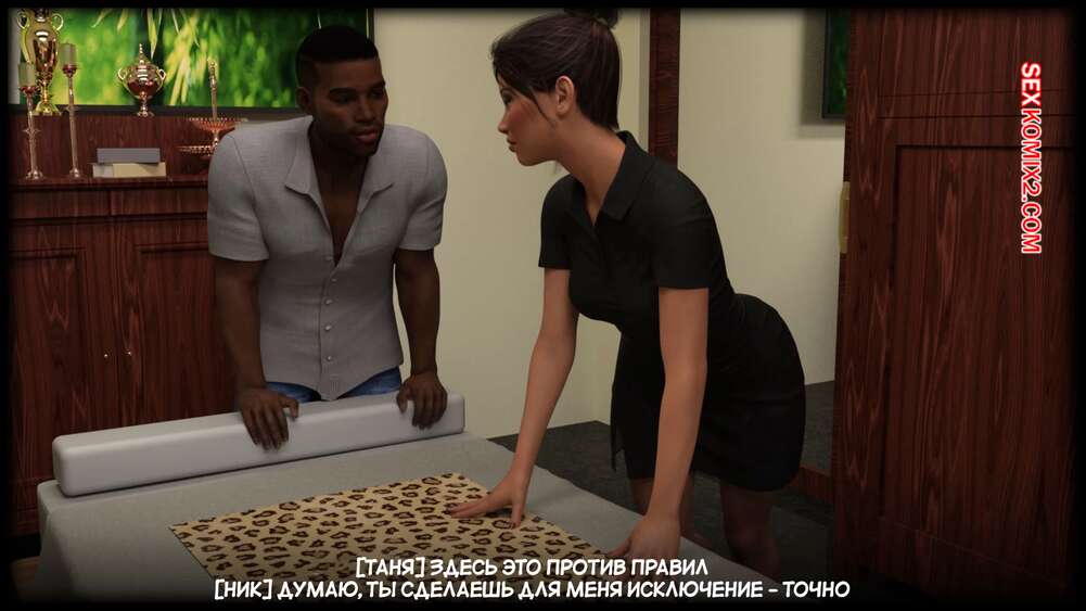 Порно комикс Черная метка. Новое приключение Тани. Часть 3. Tanyas New Adventure. Sexy3DComics Горячая брюнетка делала массаж темнокожему парню и была поражена размером его члена. Красотка разделась и стала сосать хуй клиента, после чего дала ему себя выебать.