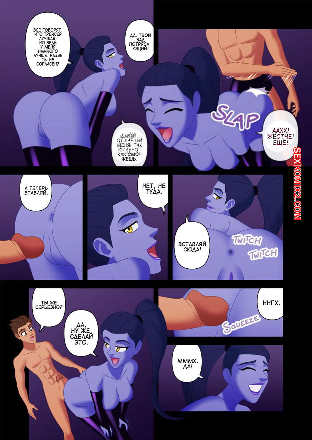 Порно комикс Overwatch. Часть 3. Пойманный в паутину. Парень оказался совсем один против злодейки. Её удалось поймать его и теперь она хочет развлечься со своей добычей.