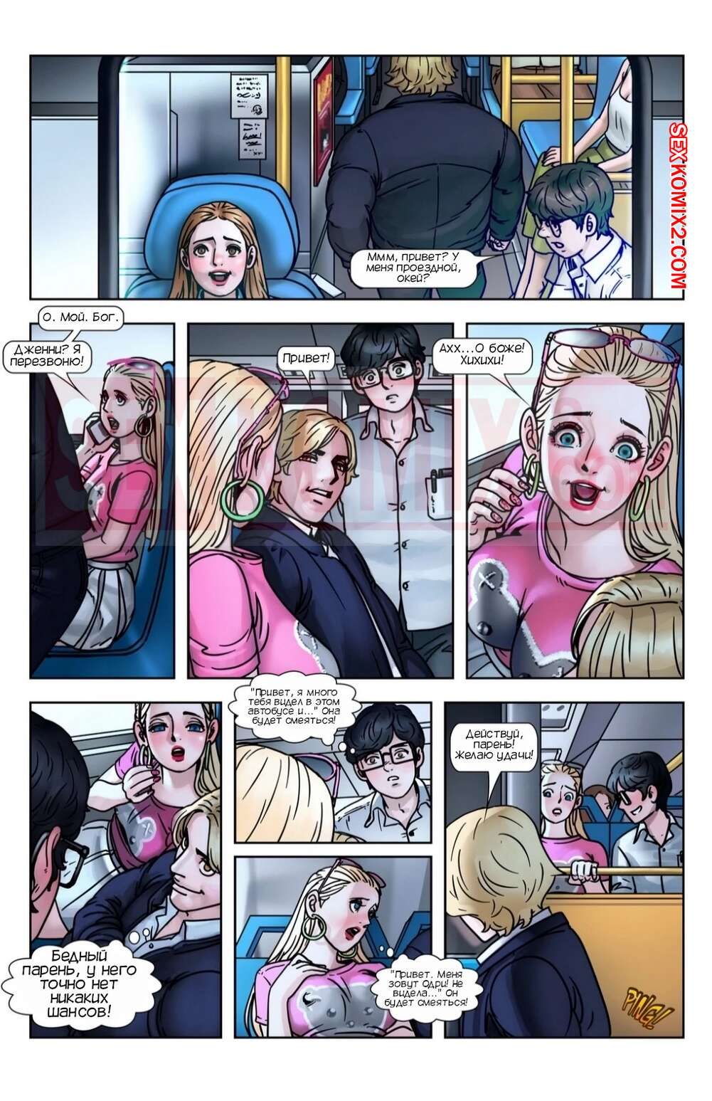 Порно комикс Я желаю. I Wish. Expansion Fan. Парень попрощался с женой и поехал на работу. В автобусе он сел рядом с горячей блондинкой. Девушка очень хотела трахаться и начал соблазнять его прямо там, ничего не поделать, парень трахнул её.