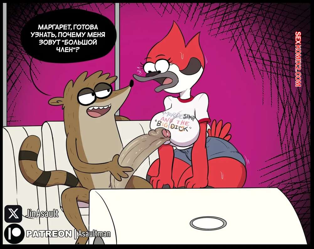 Порно комикс Regular Show. Соперничество за Маргарет. Mordesimp. JinAsault. Ригби вывалил свой член перед Маргарет и поразил ее размером. Отныне девушка не может и дня провести без члена со своим дружком, который доставляет ей мощнейшие оргазмы.