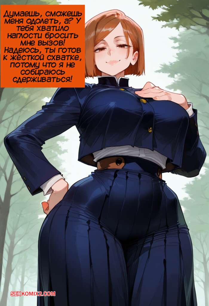 Порно комикс Jujutsu Kaisen. Нобара думала, что сможет одолеть его. RandoAI Нобара встретилась в лесу с темнокожим парнем, чтобы устроить битву. Красотка стала сосать огромный хуй парня, думая, что истощит его, но все пошло иначе. Парень насадил красотку на свой хуй и хорошенько ее отъебал и заполнил спермой, оставив девушку без сил. Теперь она требует реванша.