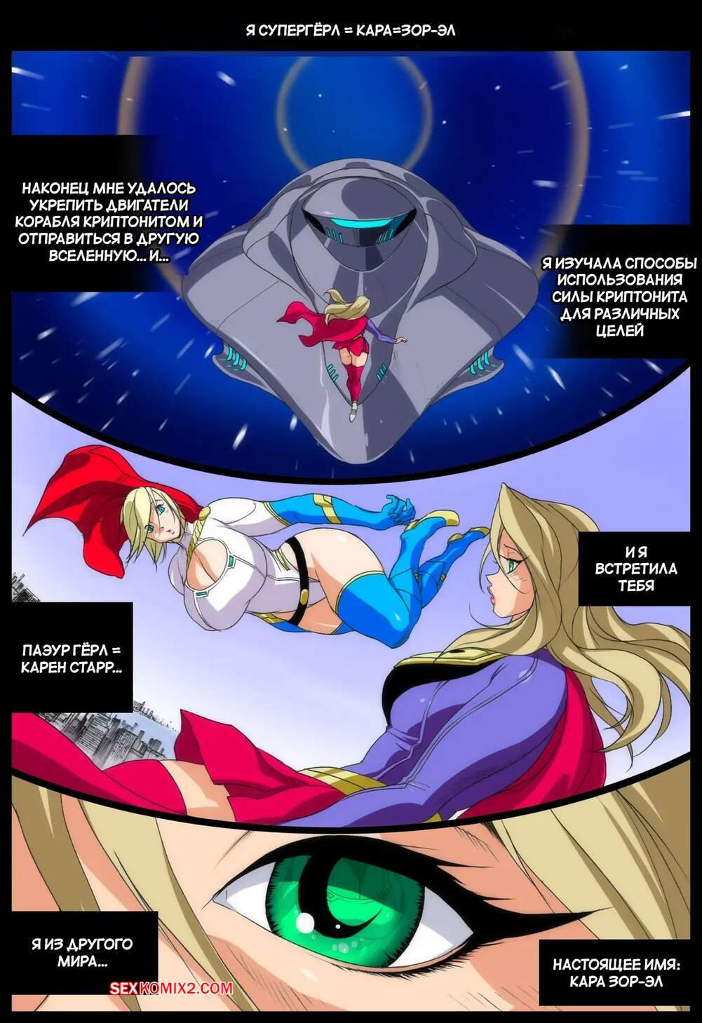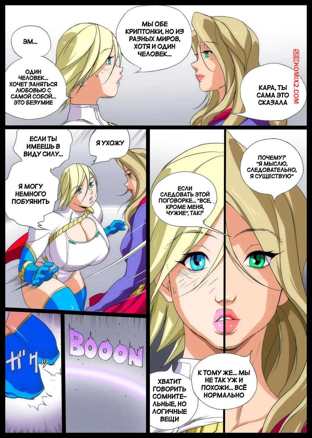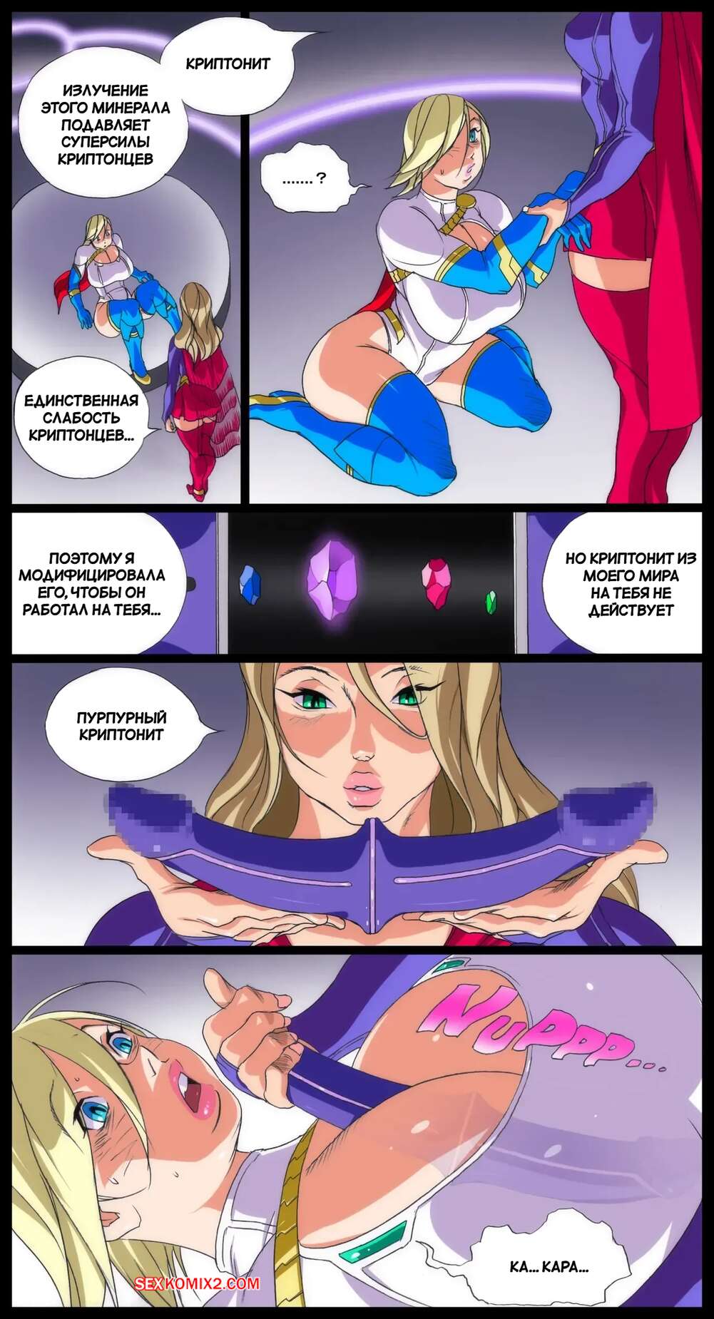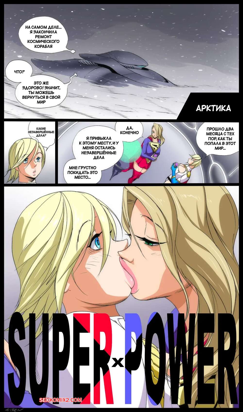 Порно комикс DC. Сверхновая сила в Супермене. Super x Power in Superman. Eiden. Пауэргерл спасла город и отправилась на встречу с Супергерл, чтобы пошалить. Возбужденные блондинки стали страстно целоваться и ласкать друг дружку, после чего занялись лесбийской еблей.