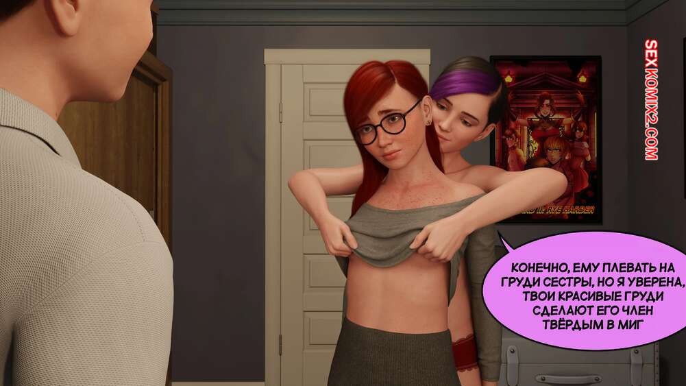 Порно комикс Истории Сантори. Часть 11. Santori Stories. Santo Fabbro Девушка решила сделать сюрприз своему брату и привела домой свою подругу. Девушки встали на колени и стали сосать большой хуец парня, чтобы затем он трахнул рыжую гостью.