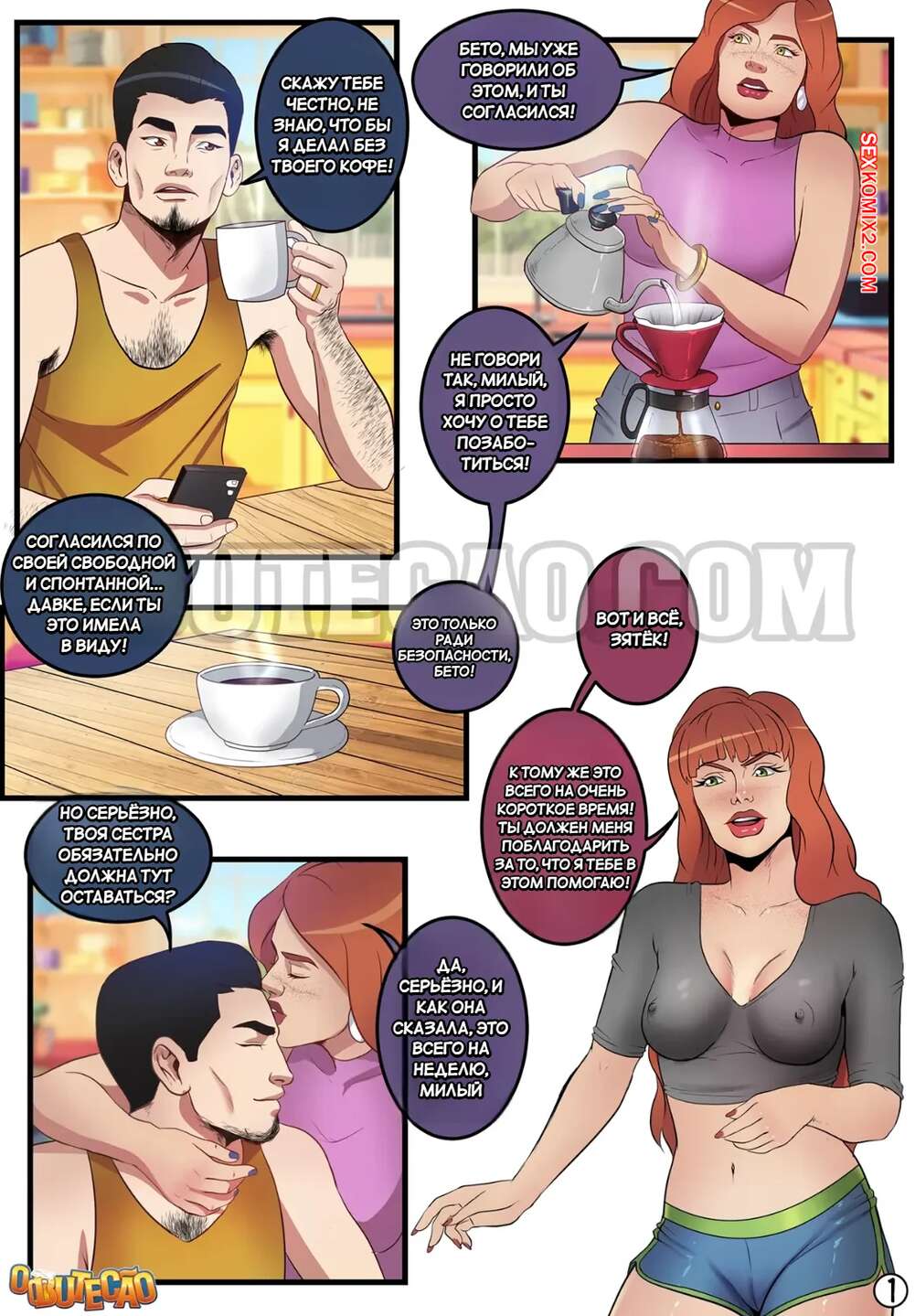 Порно комикс Я влез в задницу своей младшей невестки. O Butecao Парень остался дома наедине с сестрой своей любимой, пока та уехала по рабочим вопросам. Рыжая красотка решила проверить его на верность, но была поражена размером его член. Девушка встала на колени и отсосала большой хуй мужа сестры, после чего дала ему себя выебать во все дырочки.