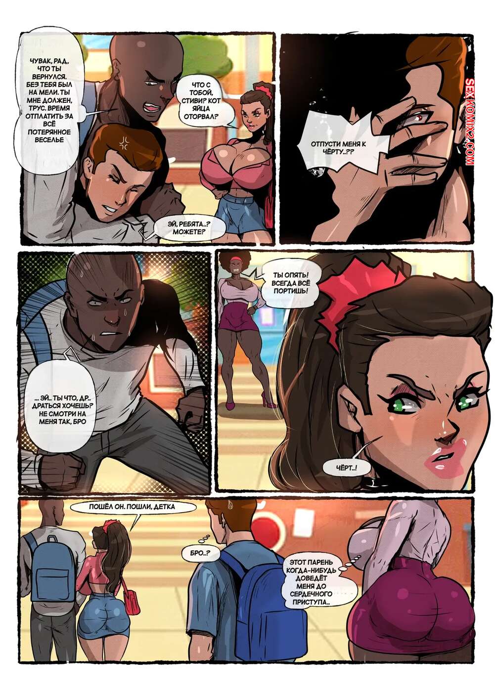 Порно комикс Суперсемейка. Хулиганы. Часть 2. Bullies. Lasga Claven После тренировки в спортзале Эластика отправляется на встречу с темнокожим хулиганом. Она надевает сексуальное черное белье, чтобы порадовать парня. У него мгновенно встает хуй при виде красотки и она начинает его тщательно ублажать.