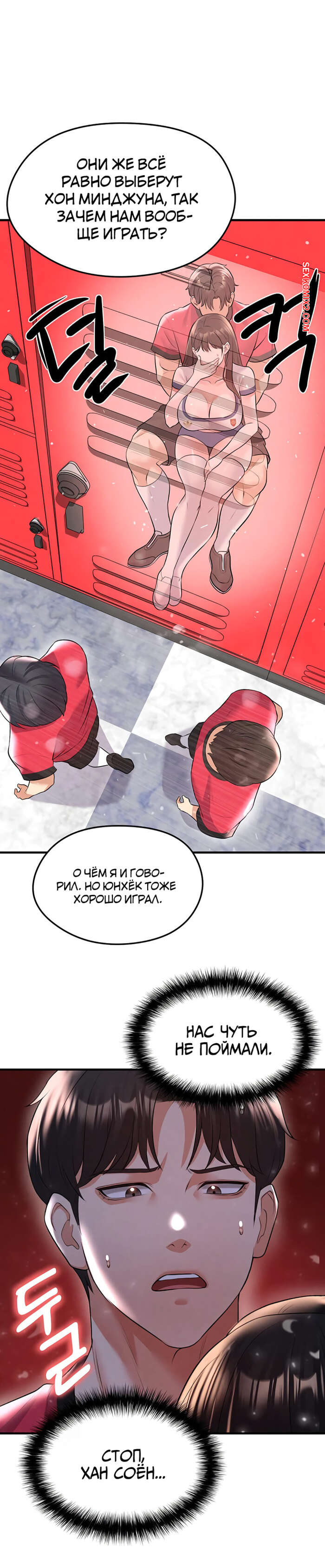 Порно комикс Красавчик хорош в футболе. Часть 23 и 24 и 25. eolgulcheonjaega chugguleul jalham Парень с девушкой спрятались в шкафчике и красотка стала упираться сочной попкой прямо в член парня. Естественно он возбудился, поэтому когда они оттуда выбрались, он раздел девушку и стал ласкать ее большие сиськи.