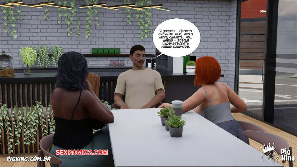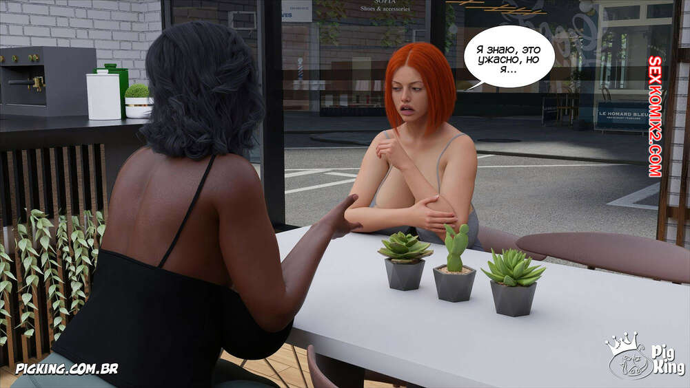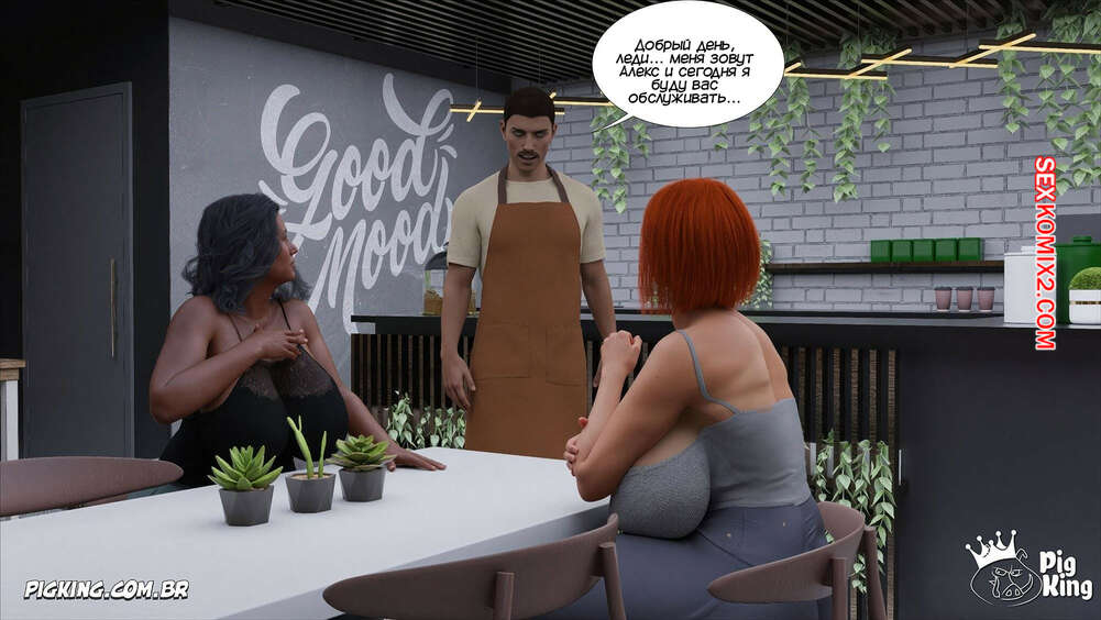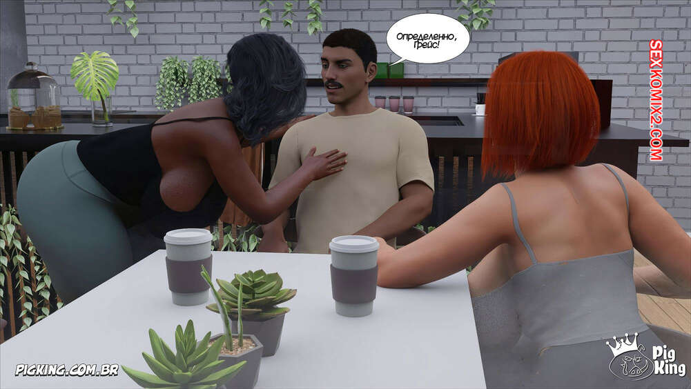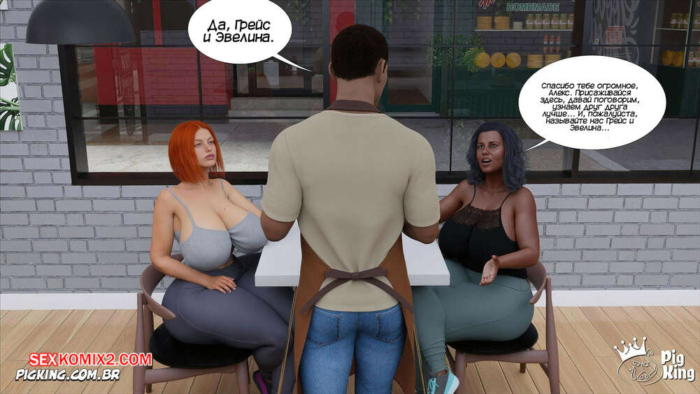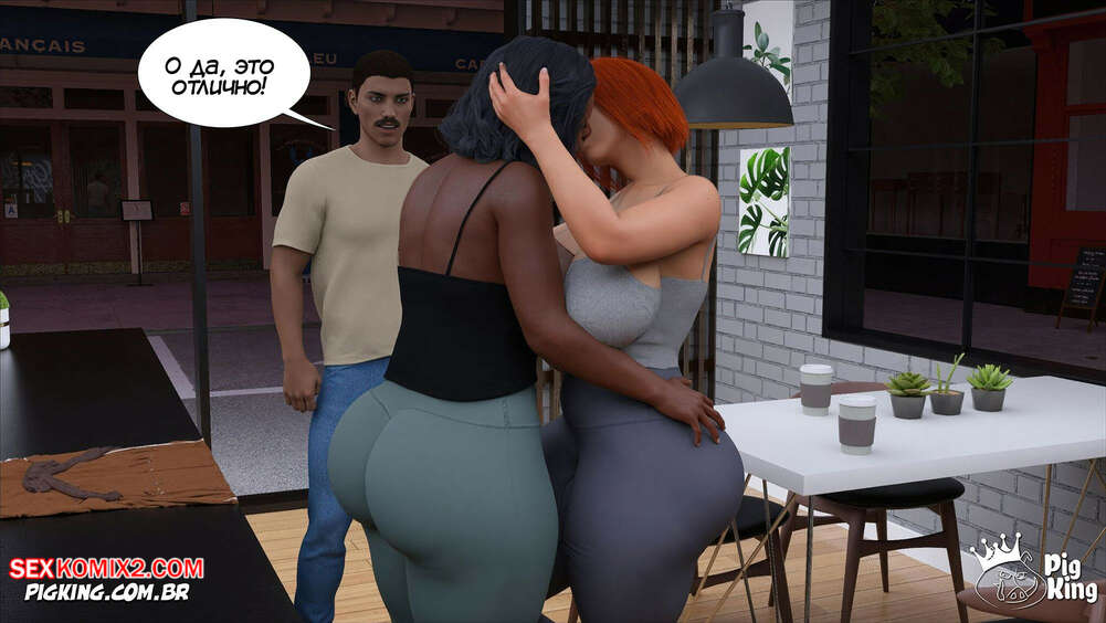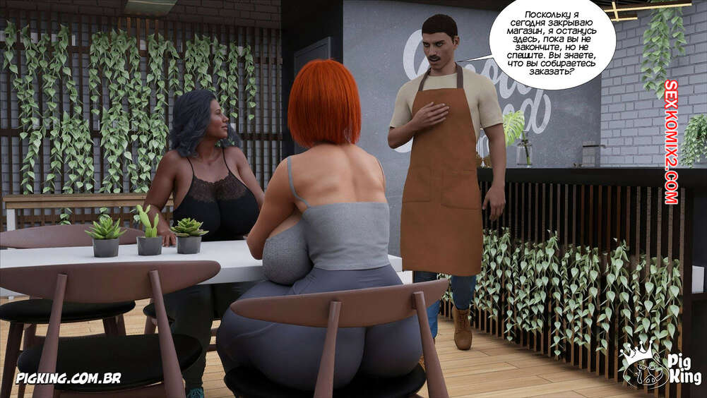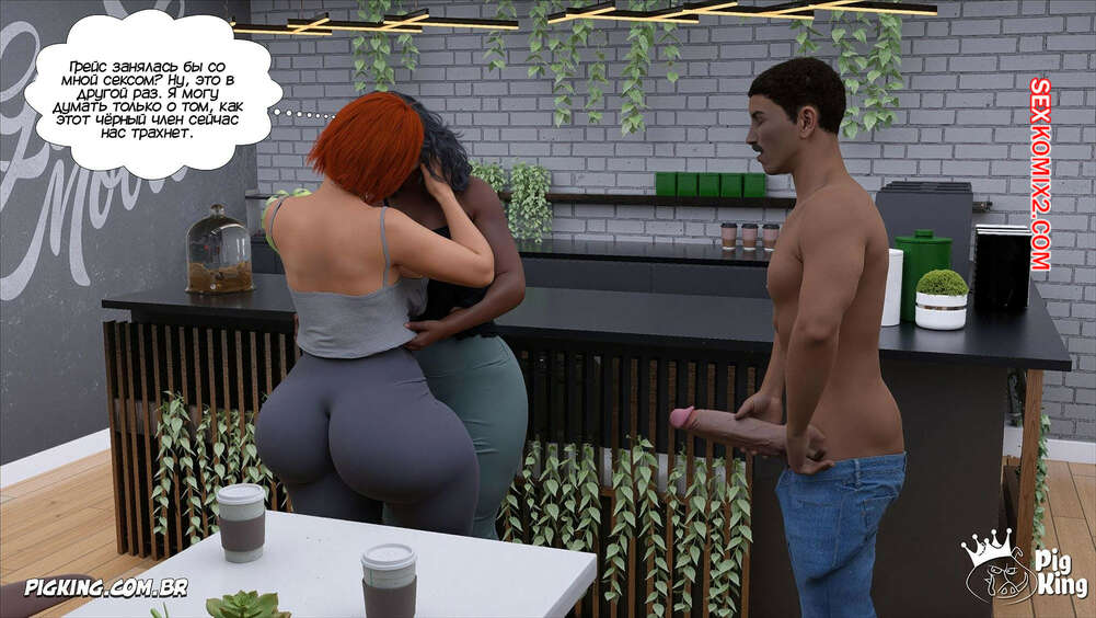 Порно комикс Большой черный член. Часть 28. Big Black Cocks. CrazyDad3D Эвелина и Грейс отправились в кафе, чтобы обсудить свои подозрения по поводу измен мужей. Красотки положили глаз на симпатичного официанта, поэтому они решили воспользоваться ситуацией и стали его соблазнять.