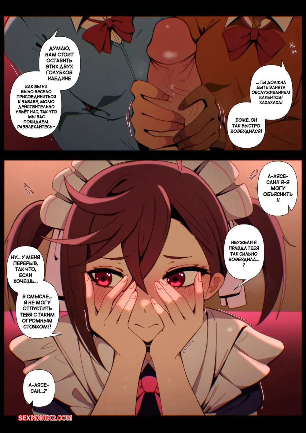 Порно комикс Моемое. MOeMOe. Niui. Горячая брюнетка надела сексуальный костюм горничной, желая соблазнить своего дружка. Девушка встала на колени и отсосала твердый хуй парня, после чего дала ему себя выебать.