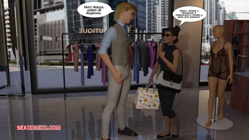 Порно комикс Фотосъёмки. Часть 3. Photoshootings. VGer Майкл встречает в магазине одежды подругу своей мамы и узнает, что горячая азиаточка развелась с мужем. Он помогает ей донести пакеты, после чего соблазняет милфу и трахает ее.