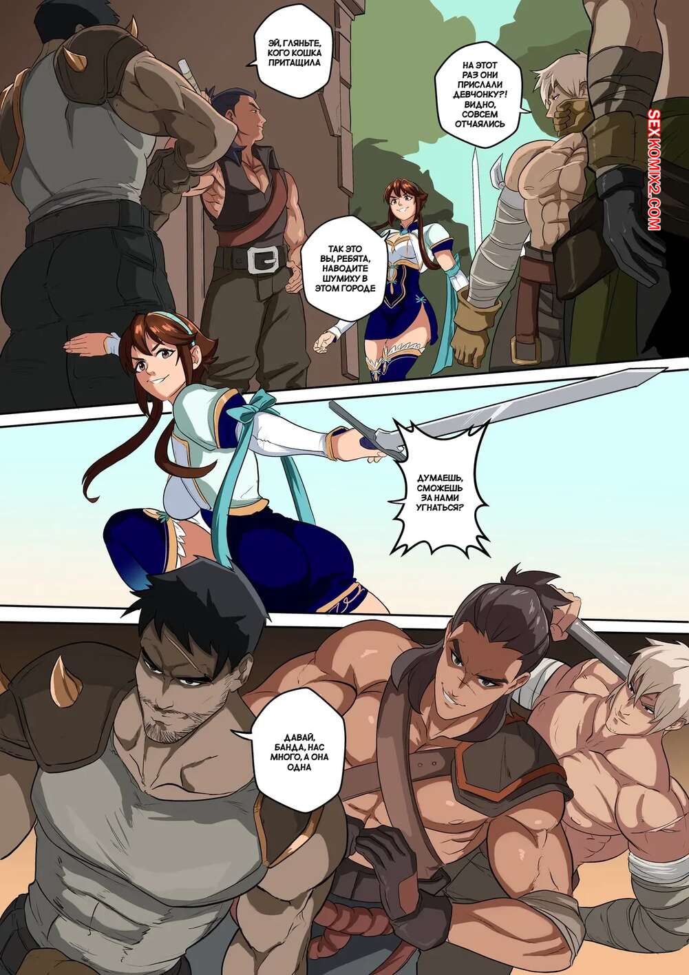 Порно комикс Soul Calibur. Сянхуа против бандитов. Xianghua vs. Bandits. Rokflip Горячая брюнетка прогуливалась в переулке, где ее поймали бандиты. Они раздели девушку и выебали ее во все дырочки, после чего покрыли ее своей горячей спермой.