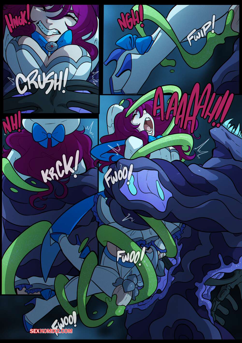 Порно комикс Волшебная мисс Люси. Часть 2.3. Magical Miss Lucy. Kinkymation Красотку Люси схватил огромный монстр и лишил девушку возможности двигаться. Он достал свои щупальцы и стал ебать девушку во все дырочки, но ей удалось вырваться.