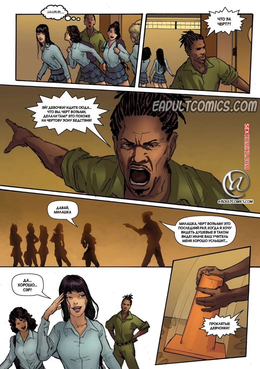Порно комикс Месть школьниц. Часть 10. Schoolgirls Revenge. Yair Herrera Горячие студентки решили повеселиться с темнокожим парнем. Они разделись и возбудили его аппетитными телами, после чего отсосали его большой хуй и дали себя выебать по очереди.