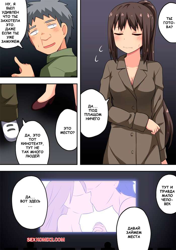 Порно комикс Niizuma Nanaka no Roshutsu Chousen. Часть 1. Fukurou Naru Tori Горячая брюнетка выходит из дома в плаще на голое тело. Это привлекает внимание взрослых мужиков, которые начинают домогаться до девушки и ласкают ее сиськи и пизденку.