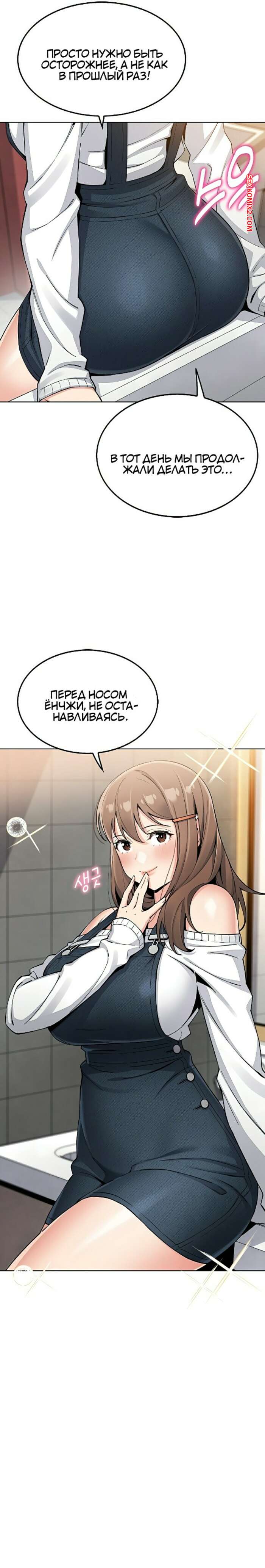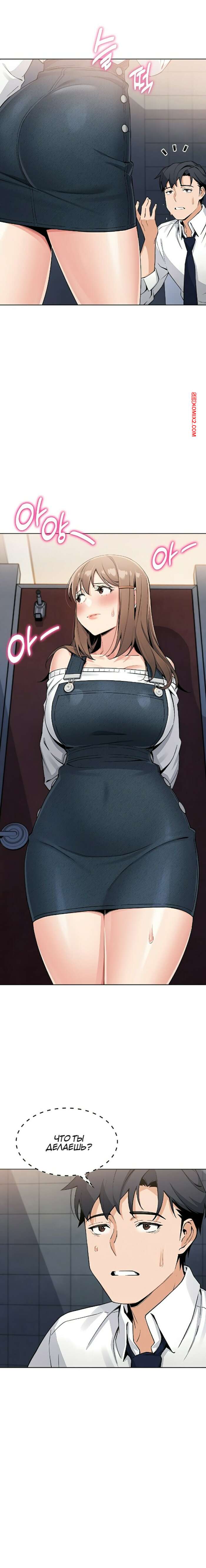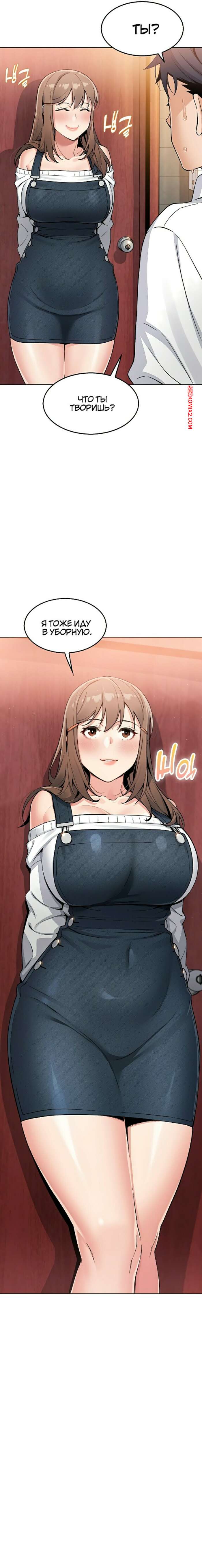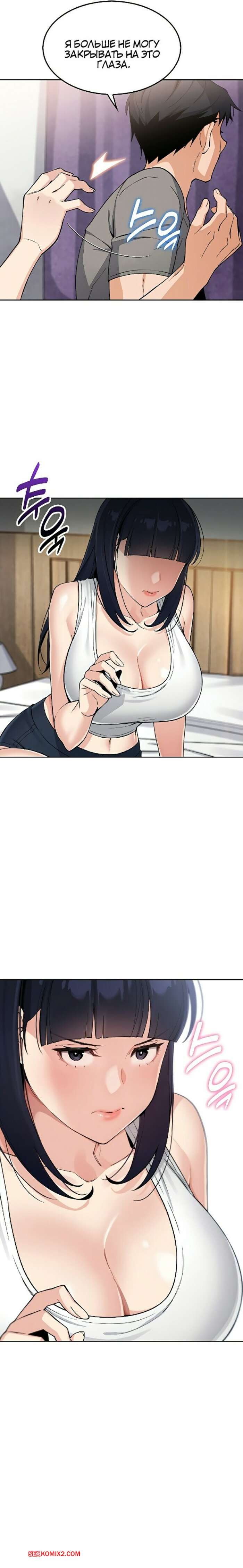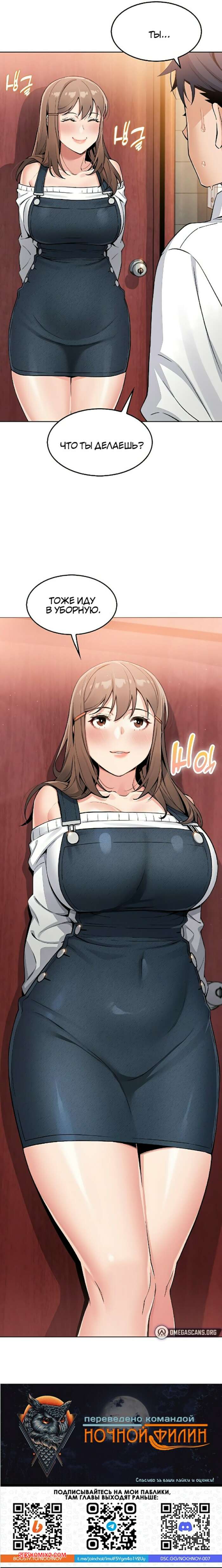 Порно комикс Моя новая соседка. Часть 7 и 8 и 9 Горячая брюнетка возбуждена и больше не может сдерживаться. Она затащила парня в туалет и стала тереться о него своими сиськами, после чего сняла трусики, готовясь оседлать член парня.