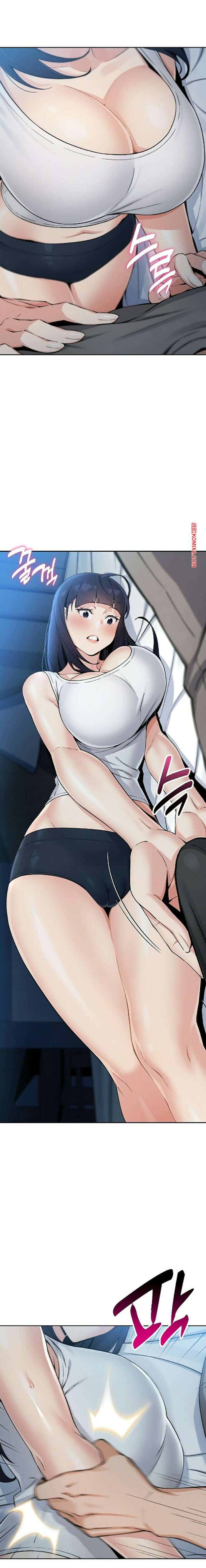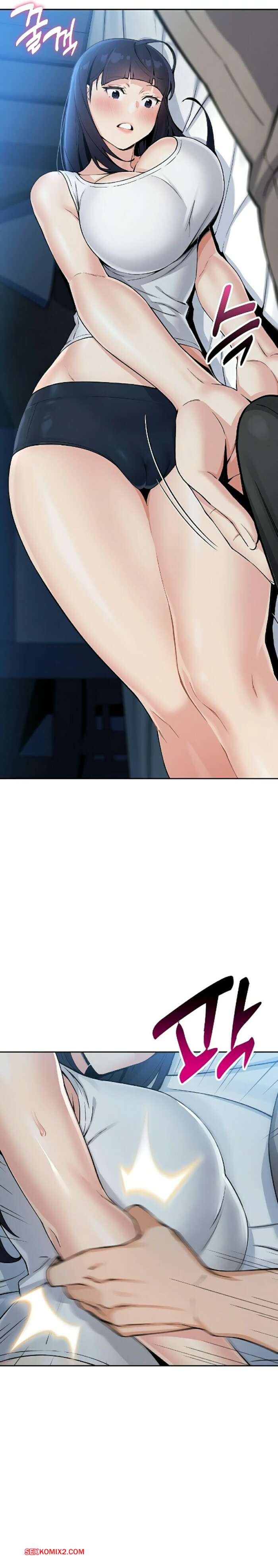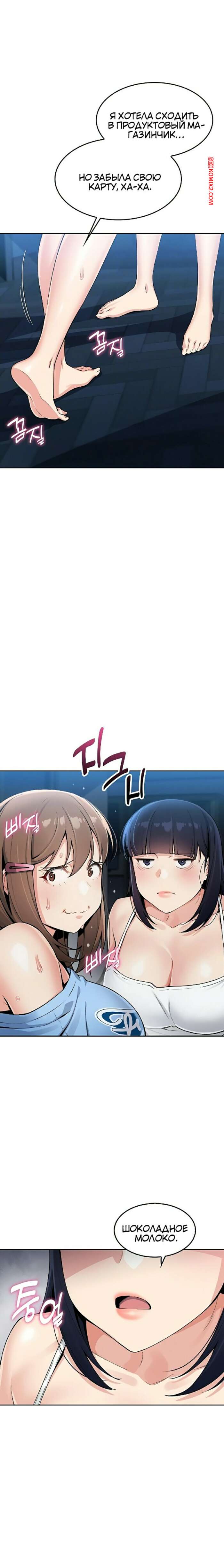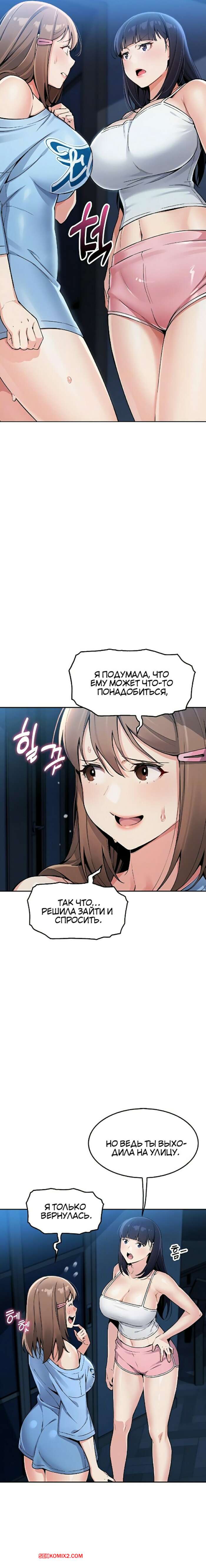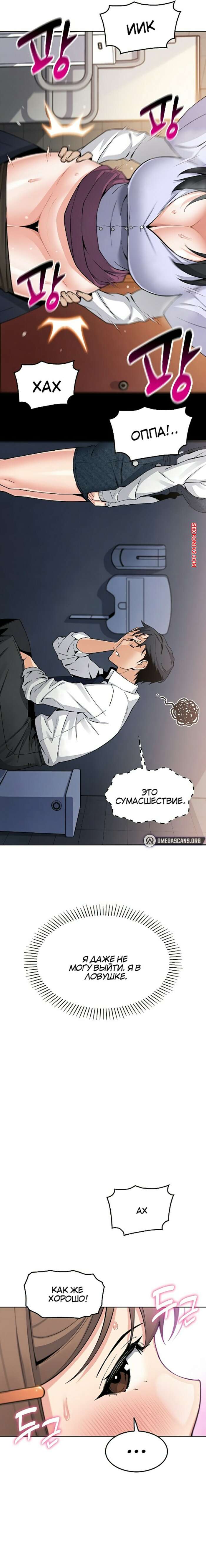 Порно комикс Моя новая соседка. Часть 7 и 8 и 9 Горячая брюнетка возбуждена и больше не может сдерживаться. Она затащила парня в туалет и стала тереться о него своими сиськами, после чего сняла трусики, готовясь оседлать член парня.