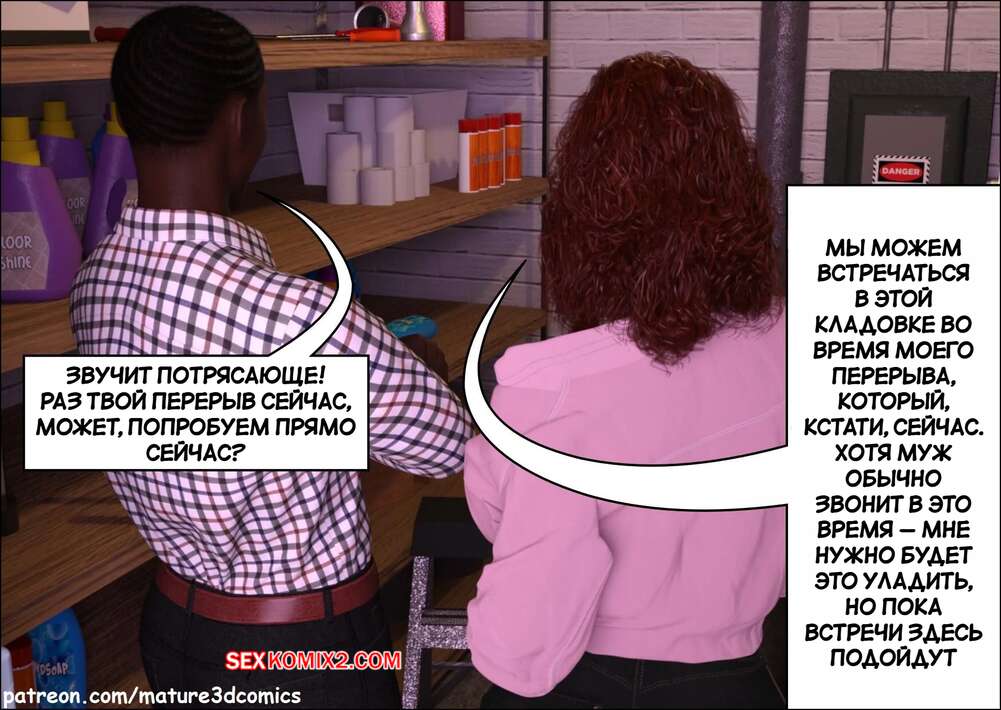 Порно комикс Жестокие намерения. Часть 2. Cruel Intentions. Mature3DComics Темнокожий парень стал заигрывать с горячей милфой и она не смогла устоять. Они отправились в подсобку, где сучка раздвинула ножки и дала парню себя хорошенько выебать.