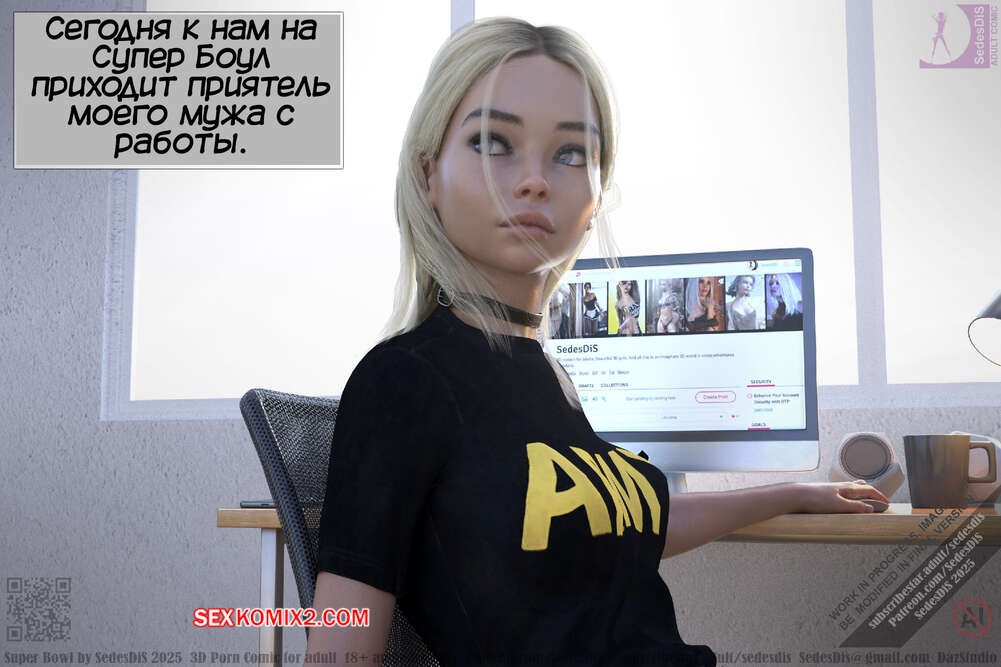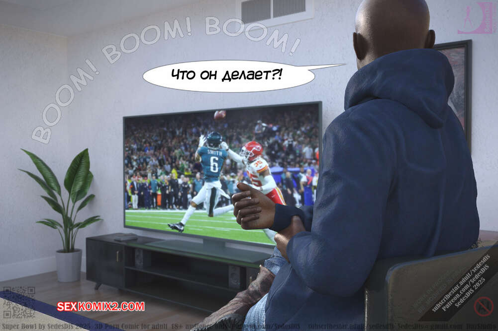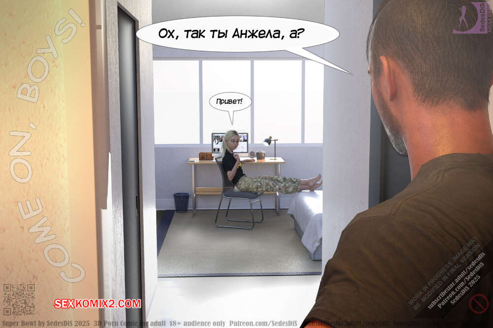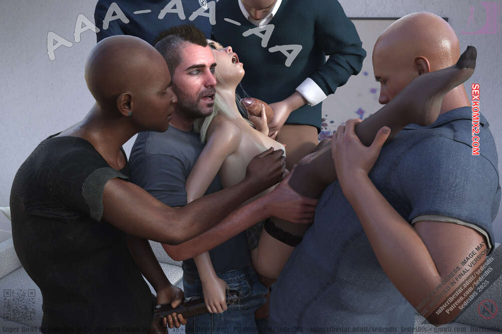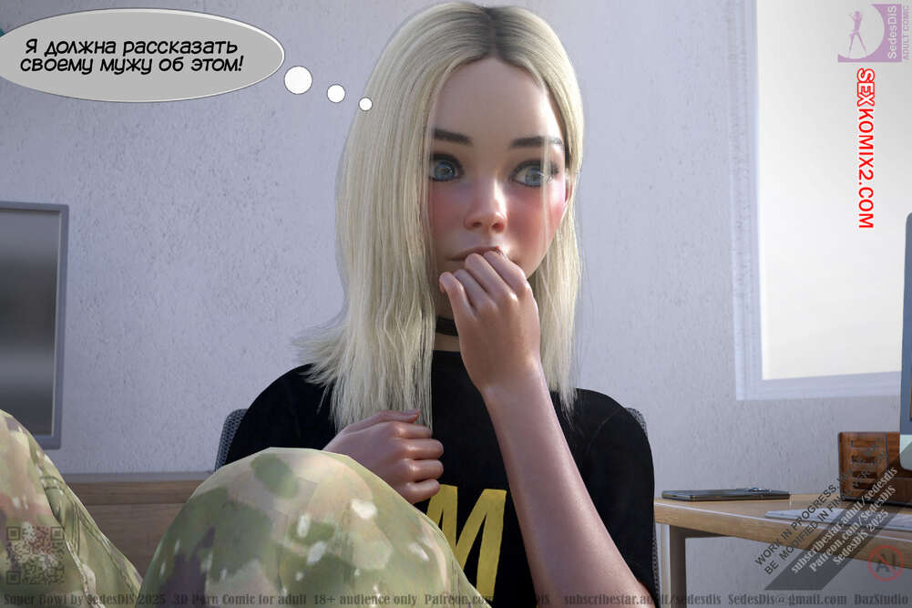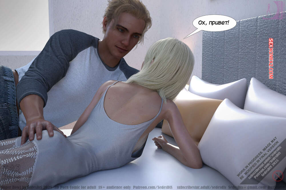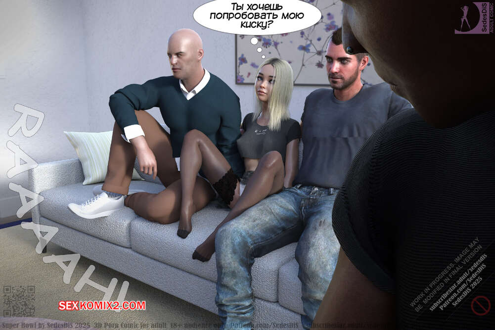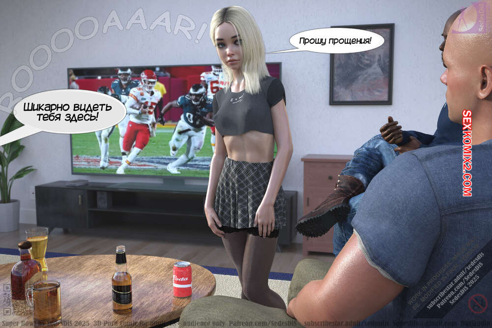 Порно комикс Супер боул. Super Bowl. SedesDiS Красотка Анжела вышла замуж и теперь привыкает к своей новой жизни в качестве жены. К ним домой приходит приятель мужа с работы, чтобы посмотреть Супер боул, и он сразу положил глаз на юную красотку.