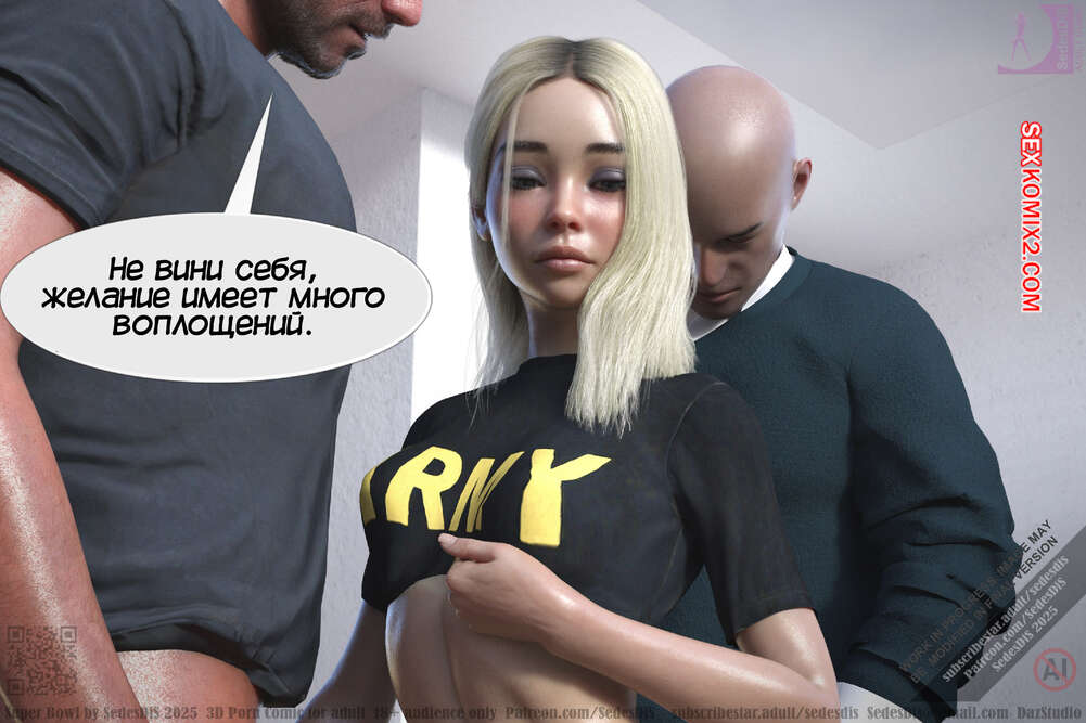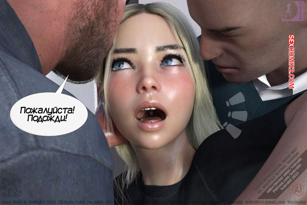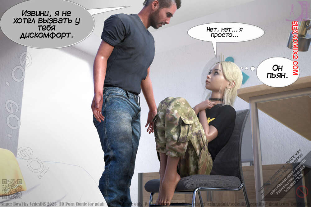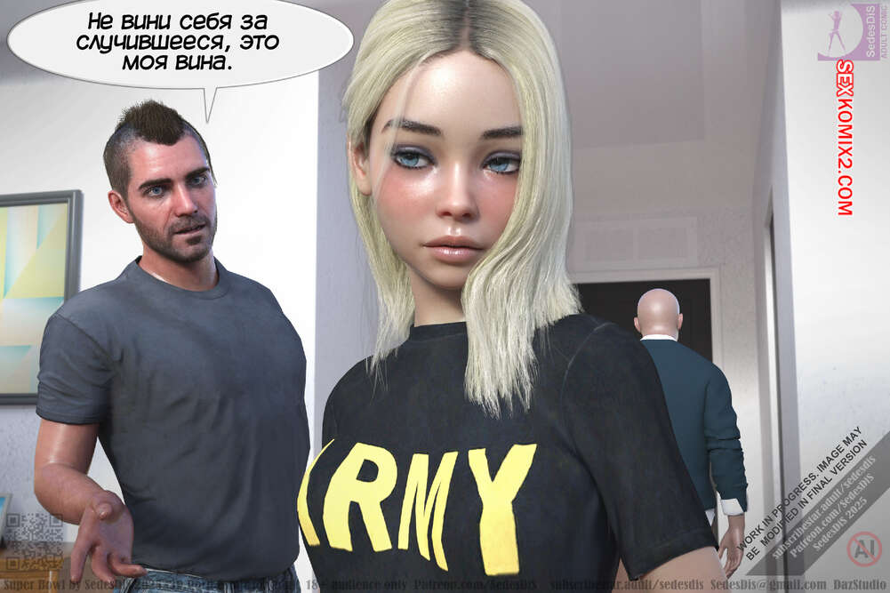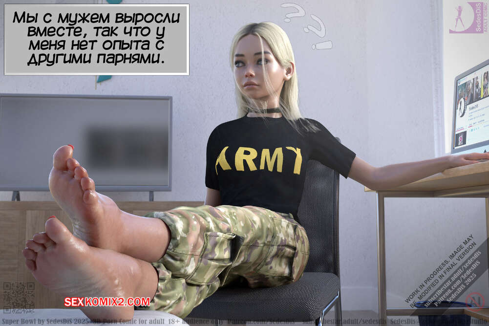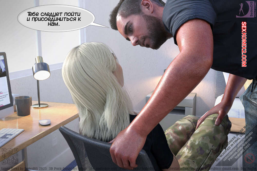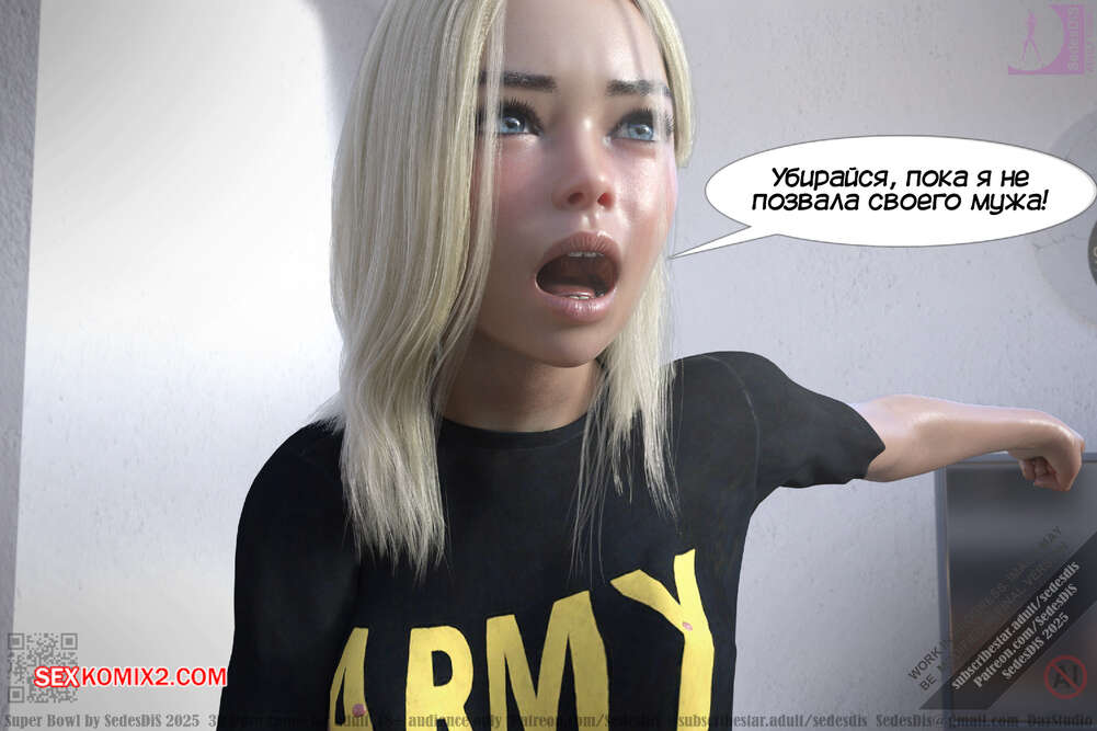 Порно комикс Супер боул. Super Bowl. SedesDiS Красотка Анжела вышла замуж и теперь привыкает к своей новой жизни в качестве жены. К ним домой приходит приятель мужа с работы, чтобы посмотреть Супер боул, и он сразу положил глаз на юную красотку.