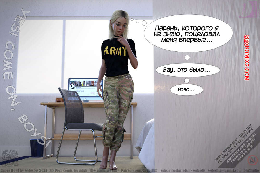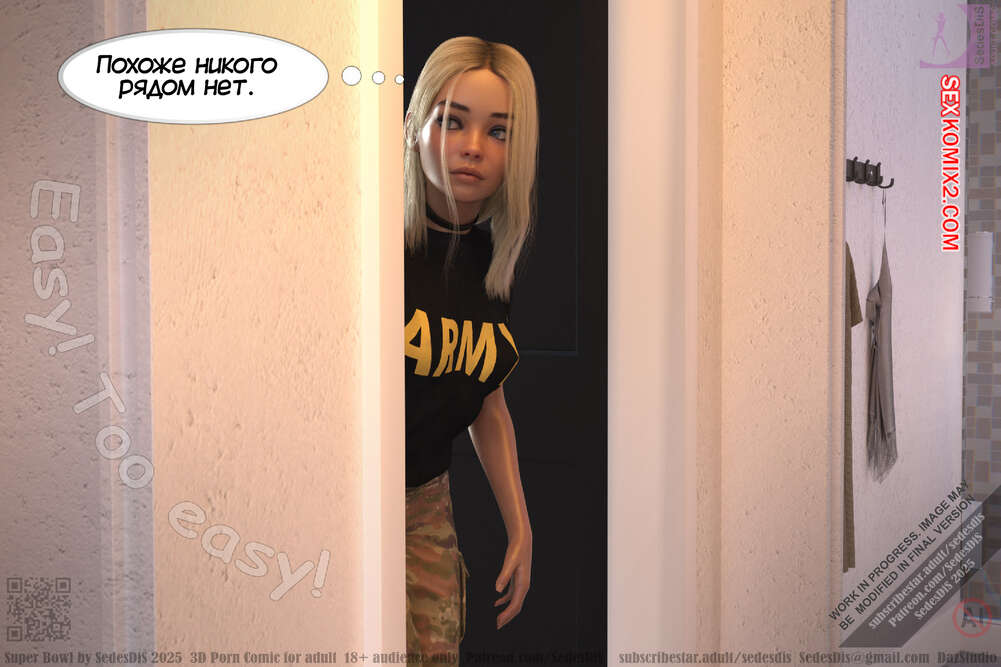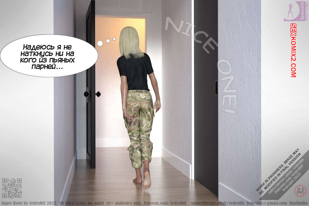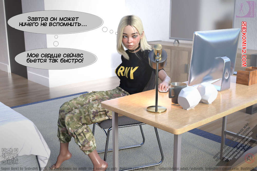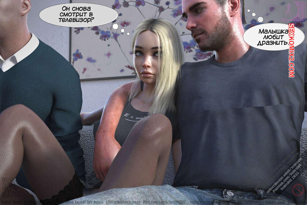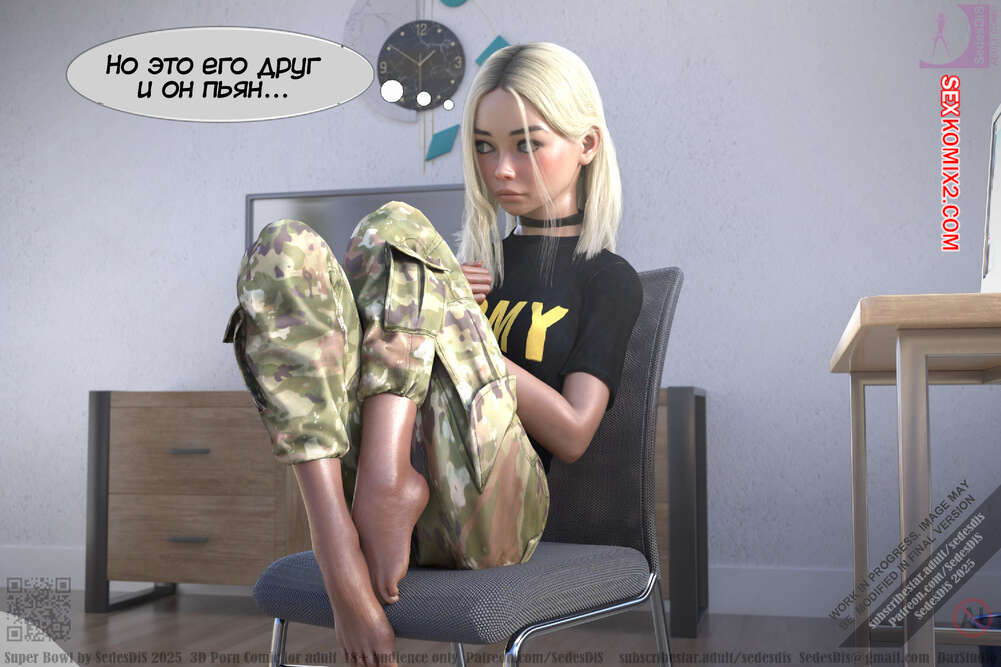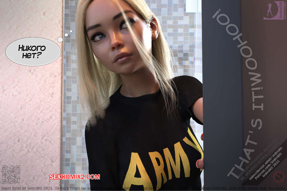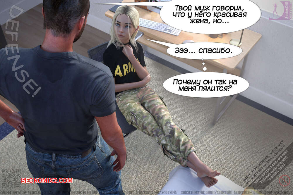 Порно комикс Супер боул. Super Bowl. SedesDiS Красотка Анжела вышла замуж и теперь привыкает к своей новой жизни в качестве жены. К ним домой приходит приятель мужа с работы, чтобы посмотреть Супер боул, и он сразу положил глаз на юную красотку.