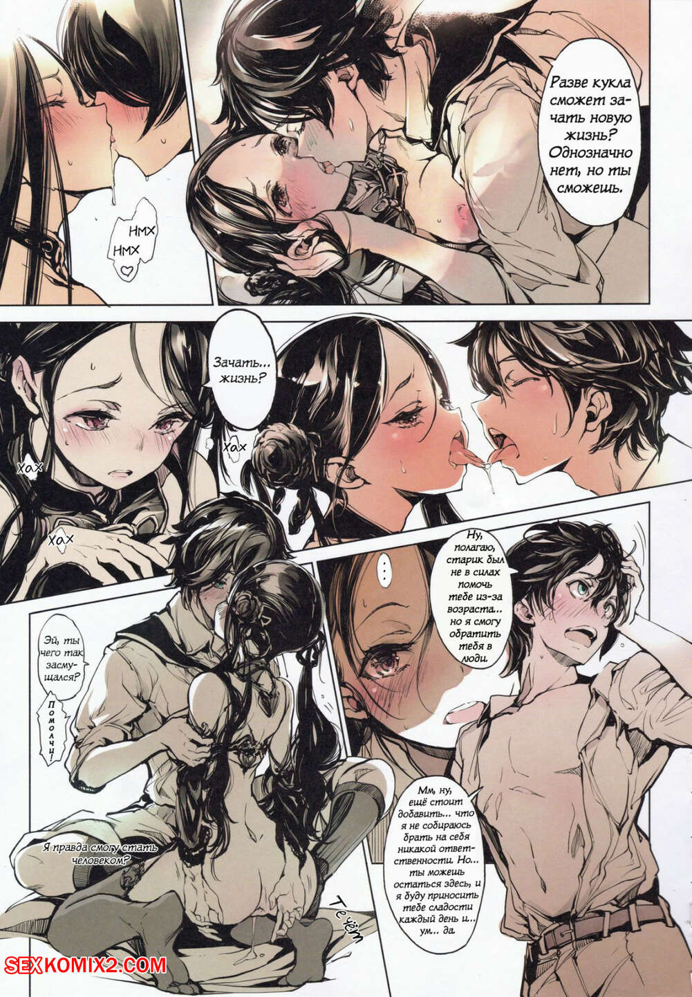 Порно комикс Бордель Коппелия. Coppelia Brothel. Ohagi san Парнишка пришел в бордель, где его ждала невероятно страстная и горячая брюнетка. Парень стянул с себя штаны и произвел на красотку невероятное впечатление своим огромным хуем. Он отлизал ее пизду, а она сделала ему лучший отсос в его жизни. Затем хорошенько возбудившись они оба занялись невероятно страстным сексом парень отъебал ее во всех позах, после чего они оба хорошенько кончили.