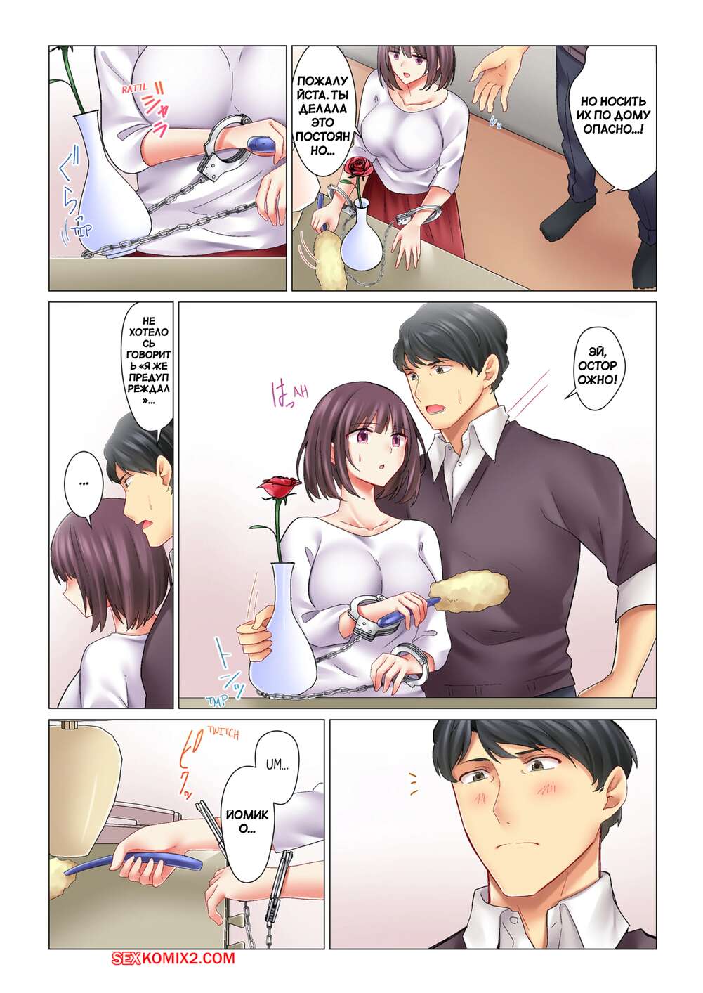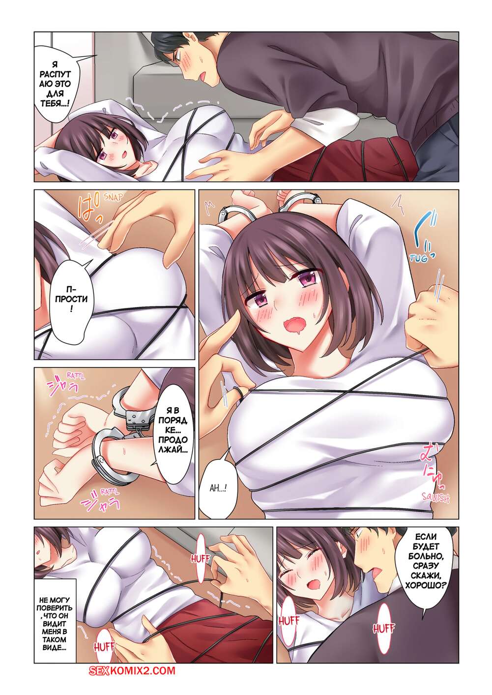 Порно комикс Наша извращенная жизнь молодоженов. Часть 3. Our Kinky Newlywed Life. Nanakusa Amane Парень очень возбуждент и хочет секса, поэтому он связал свою любимую и стал ласкать ее сиськи и целовать. Парень снимает одежду с красотки и отлизывает ей, после чего хорошенько ее трахает.