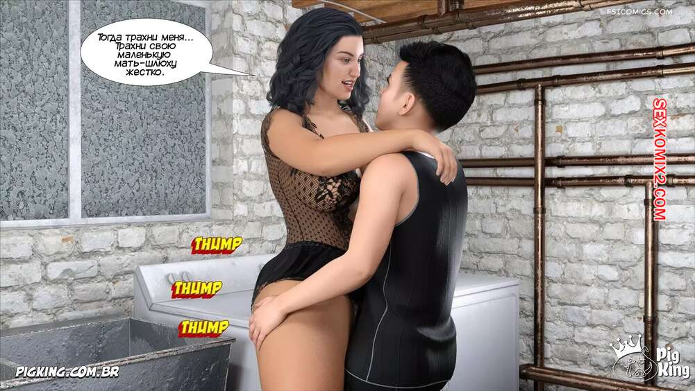 Порно комикс Марго. Часть 12. Margo. PigKing Красотка Марго стала тереться киской о работающую стиральную машину, за чем ее спалил Эйдан. Милфа встала на колени перед сыном и отсосала его член, после чего раздвинула ножки и дала себя выебать.