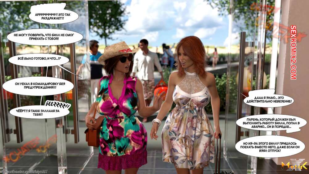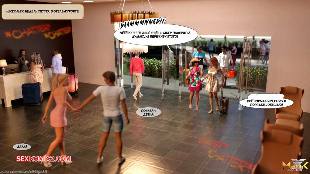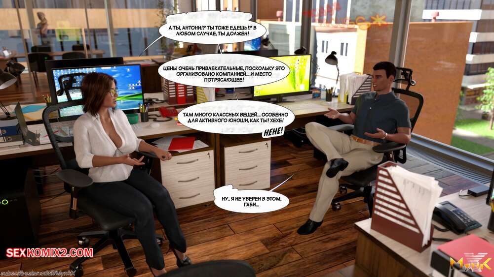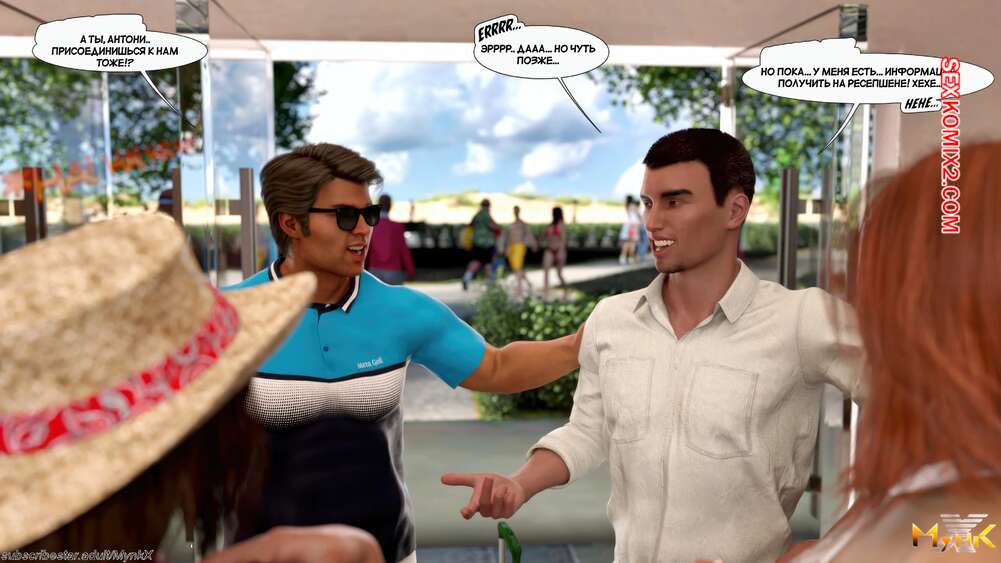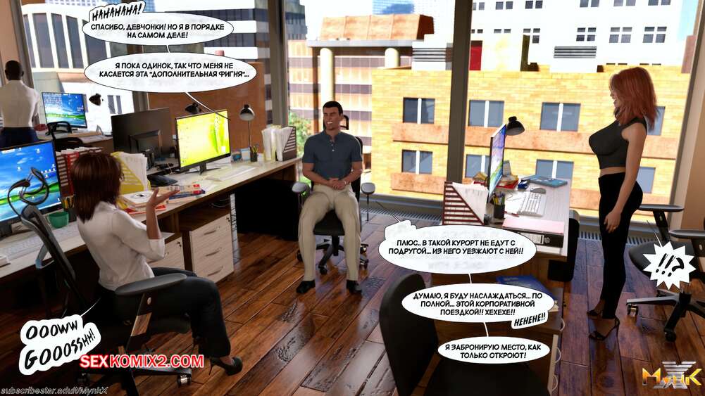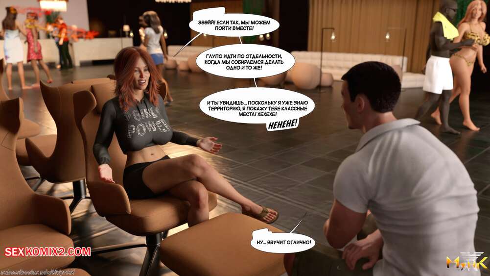 Порно комикс Корпоративная поездка. Company Trip. Mynkx. Парень отправился в поездку на курорт со своей горячей коллегой. Они решили расслабиться у бассейна, где девушка стала соблазнять парня и дала ему себя хорошенько выебать.