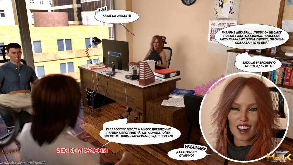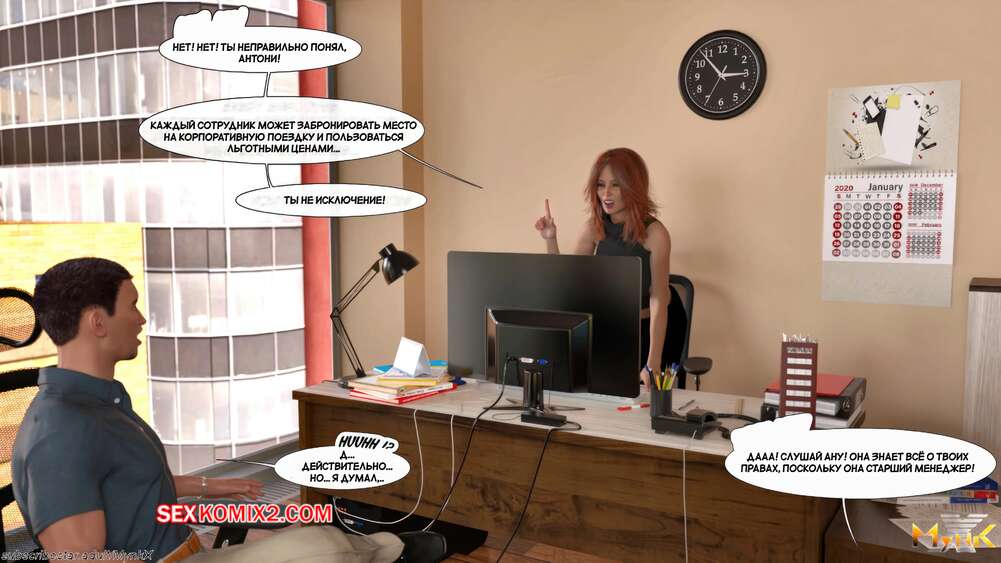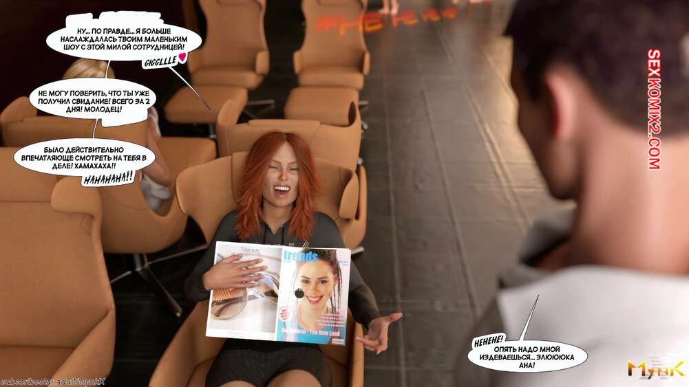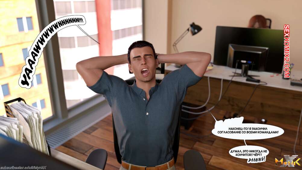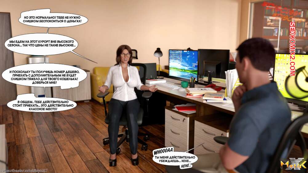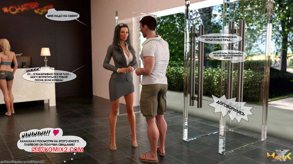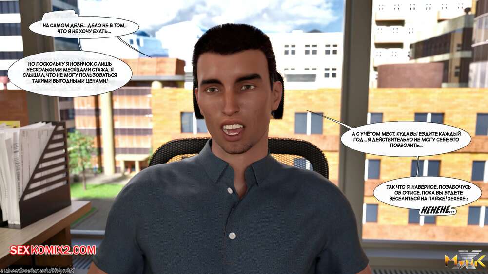 Порно комикс Корпоративная поездка. Company Trip. Mynkx. Парень отправился в поездку на курорт со своей горячей коллегой. Они решили расслабиться у бассейна, где девушка стала соблазнять парня и дала ему себя хорошенько выебать.