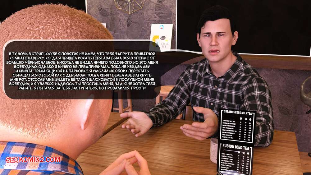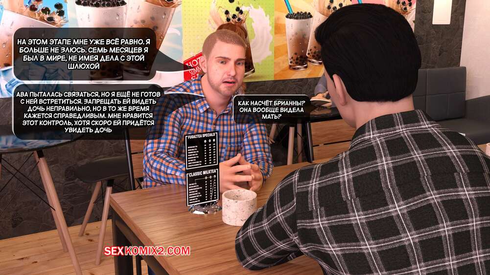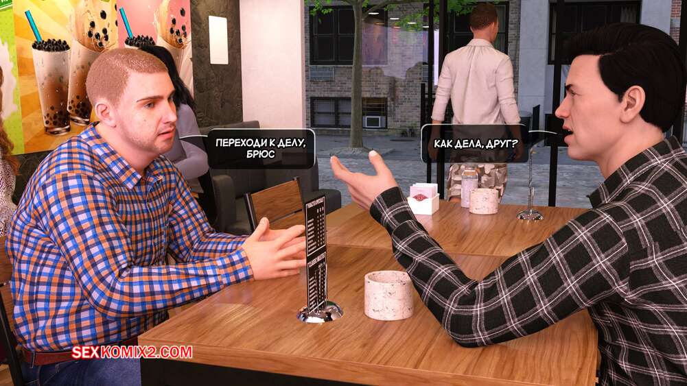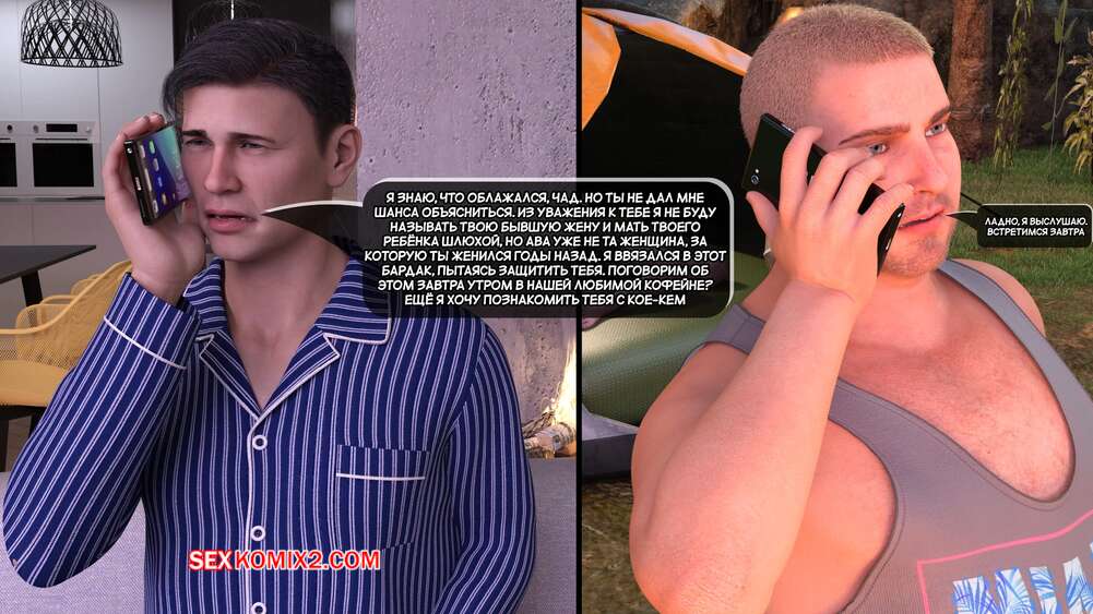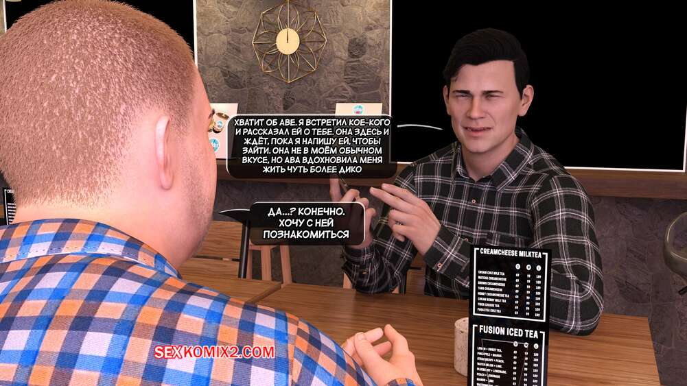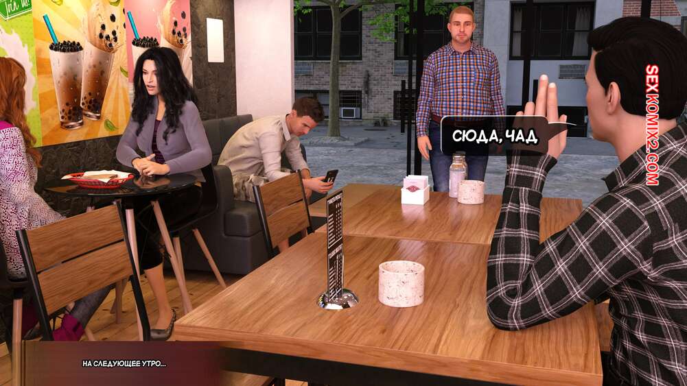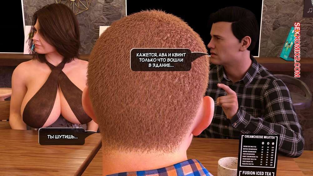 Порно комикс Грязный сосед. Часть 22. Naughty Neighbor. Mature3DComics Брюс позвонил Чаду и пригласил его встретиться в кофейне, чтобы обсудить всю ситуацию насчет Авы. Он познакомил друга с горячей брюнеткой милфой, но все пошло не по плану и в кофейню пришли Ава и Квинт.