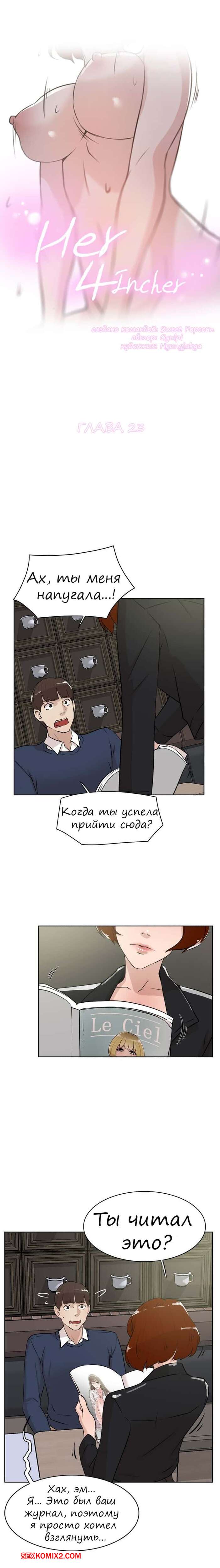 Порно комикс Её 4 размер. Части 22 и 23 и 24. Наш герой просто стал без ума от красотки модели.Он нашел журнальчик с ее фотками и решил им полюбоваться, но в этот момент его застала его подруга. Она быстренько прибрала парня к себе, чтобы он уже по традиции хорошенько ее отъебал.
