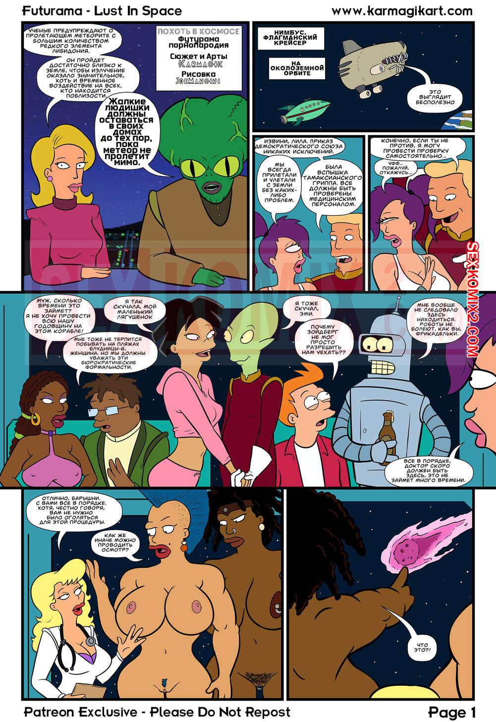 Порно комикс Футурама. Похоть в космосе. Karmagik. На землю летит метеорит, комнату космонавтов отправили для спасения планеты. Но они набухались и начали трахаться, и вовремя этой знатной оргии проебали прилет метеорита.