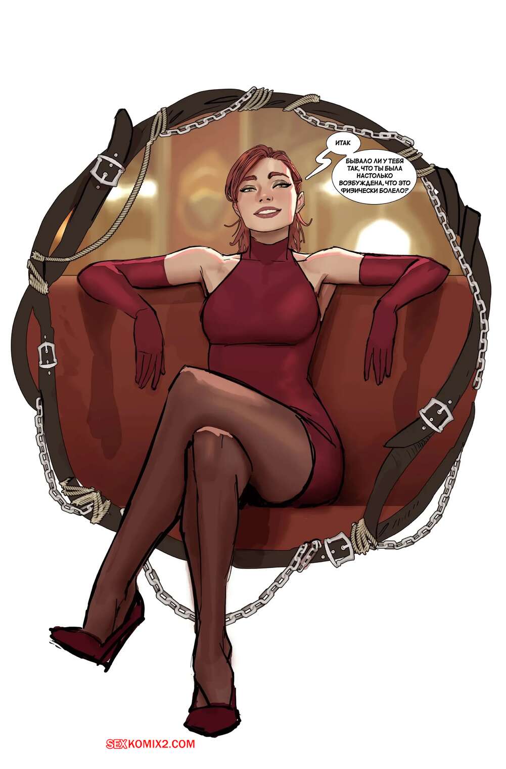 Порно комикс Кримсон после работы. Crimson after Hours. Stjepan Sejic Горячая брюнетка милфа любит доминировать в сексе. Она связала рыжую малышку в постели и хорошенько ее отшлепала, после чего надела страпон и выебала послушную сучку.