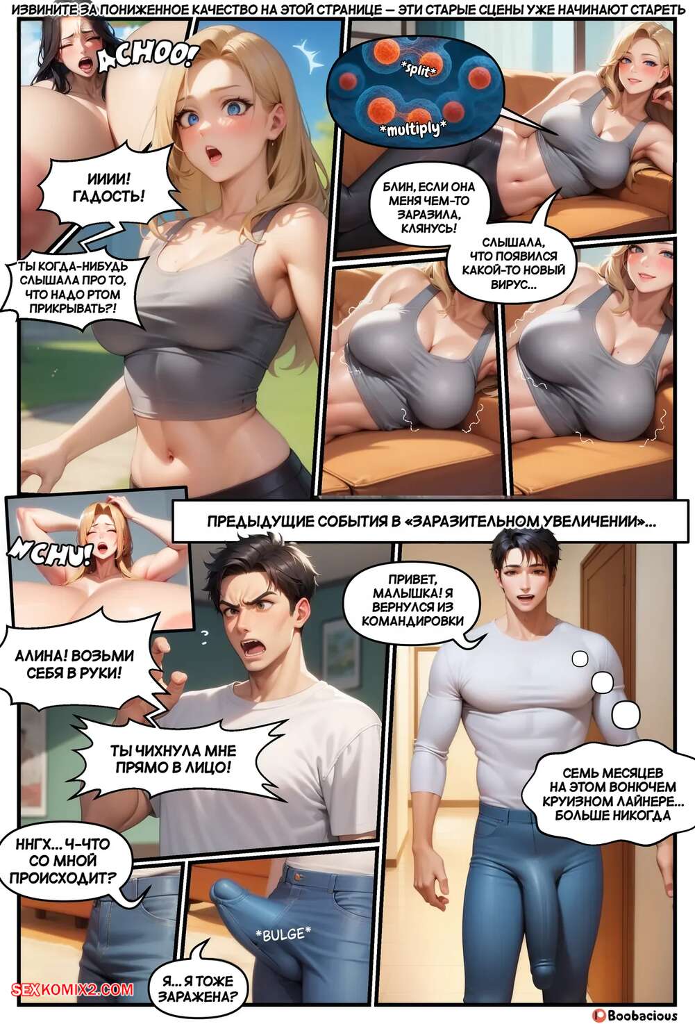 Порно комикс Заразное увеличение. Часть 6. Contagious Augmentation. Boobacious Горячая блондинка подхватила на корабле не известный вирус, который влияет на формы ее тела. Девушка пошла принять душ, где заметила, что ее сиськи и задница стали больше.