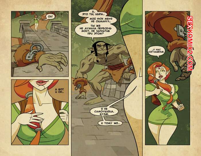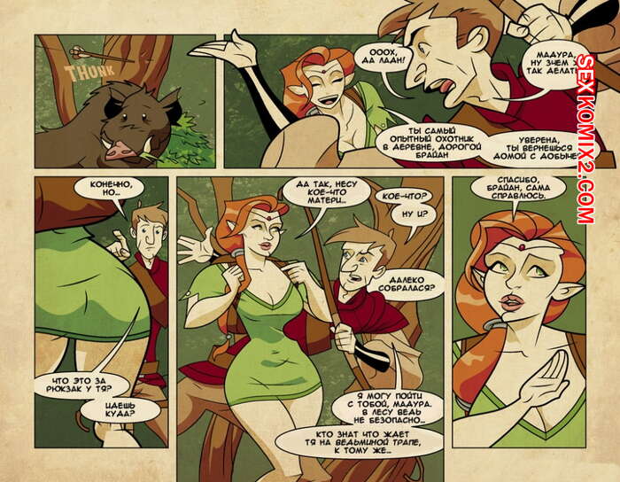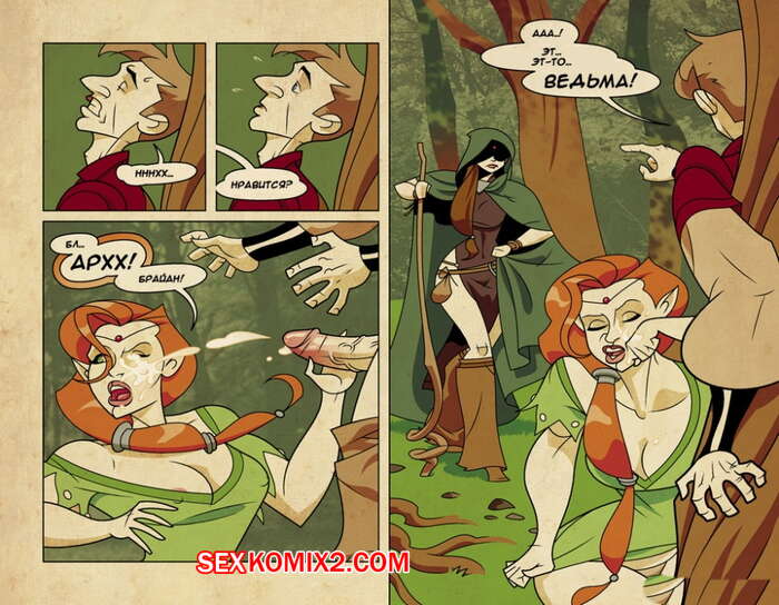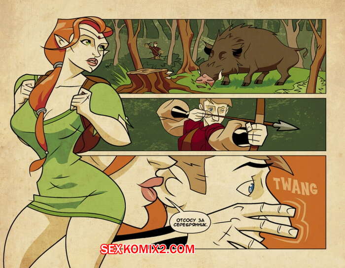 Порно комикс Игра на мечах. Части 1 и 2. Swordplay Рыжая красотка застала лучника в лесу во время охоты и предложила ему отсосать за деньги. Она достала его большой толстый член и стала страстно сосать, от чего очень возбудилась и захотела поебаться.