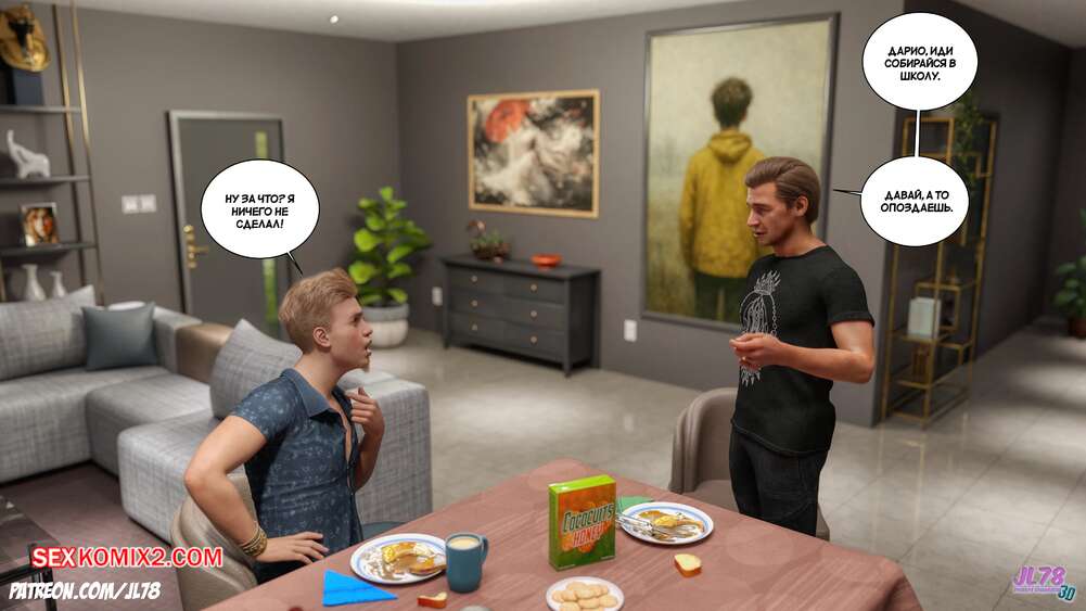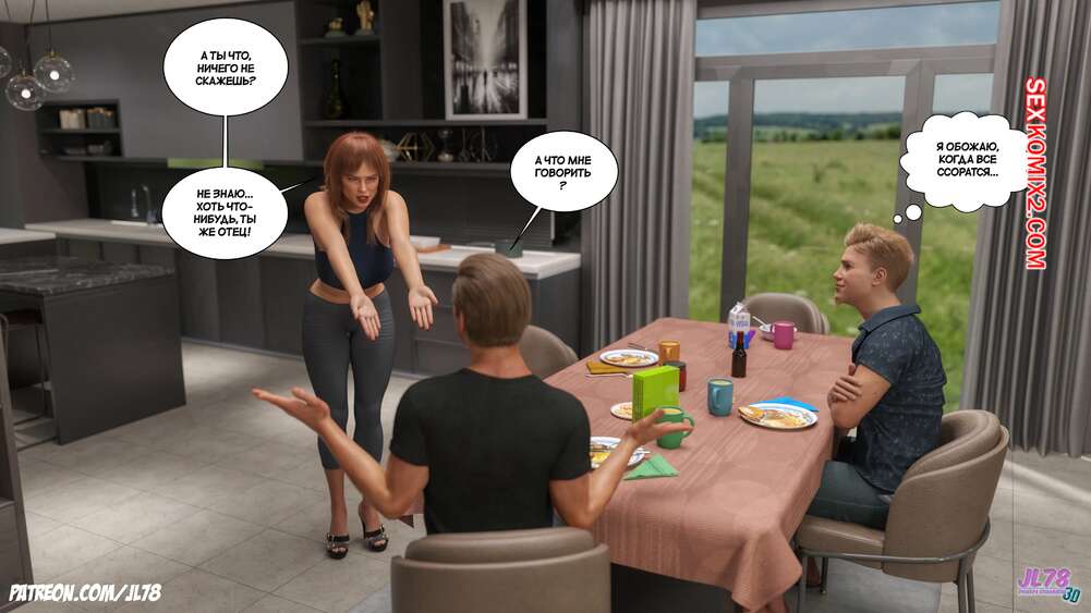 Порно комикс Семейка Риззи. The Rizzi family. JL78. Во время семейного ужина вся семью сильно переругалась, каждый пошёл в свою комнату. Но позже чтобы помириться они начали разговаривать и это привело к возбуждению и сексу, а затем все начали дружно трахаться.