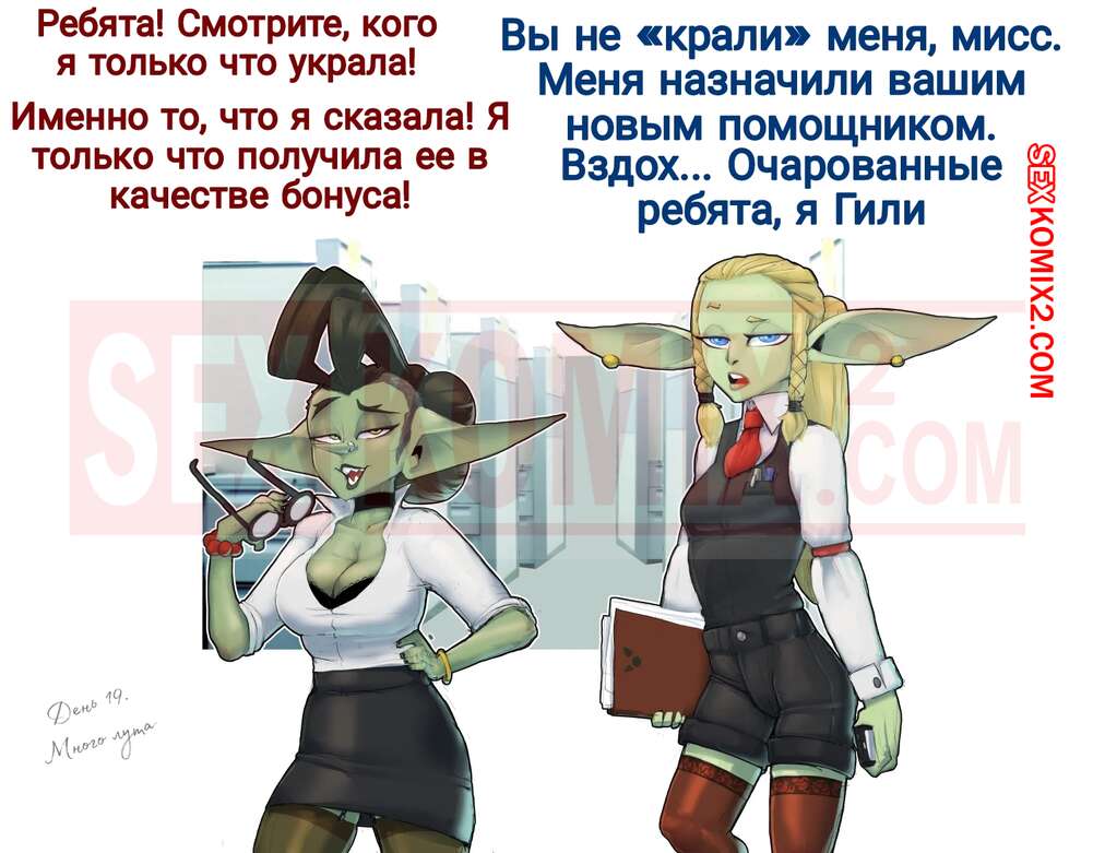 Порно комикс Гоблин Босс. Darkminou. Представляем вам несколько рабочих дней горячей женщины гоблина, она босс в крупной компании. В таких компаниях без жесткого управления не возможно, поэтому начальница строга со всеми работниками. И Даже за опоздание на 5 минут заставляет вылизывать свою пизду.