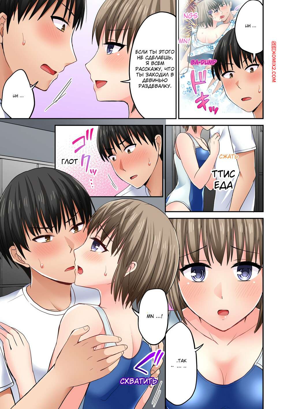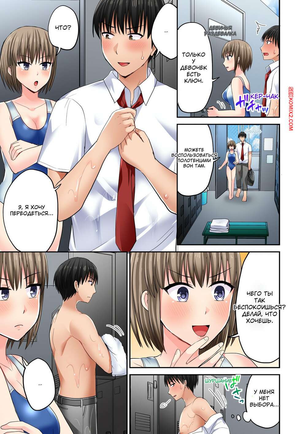 Порно комикс Месть Языком. Без цензуры. Часть 46 и 47 и 48 Горячая брюнетка зовет парня в раздевалку, чтобы немного пошалить. Они они старстно целуются, после чего девушка уложила дружка на пол, желая поскорее оседлать его член.
