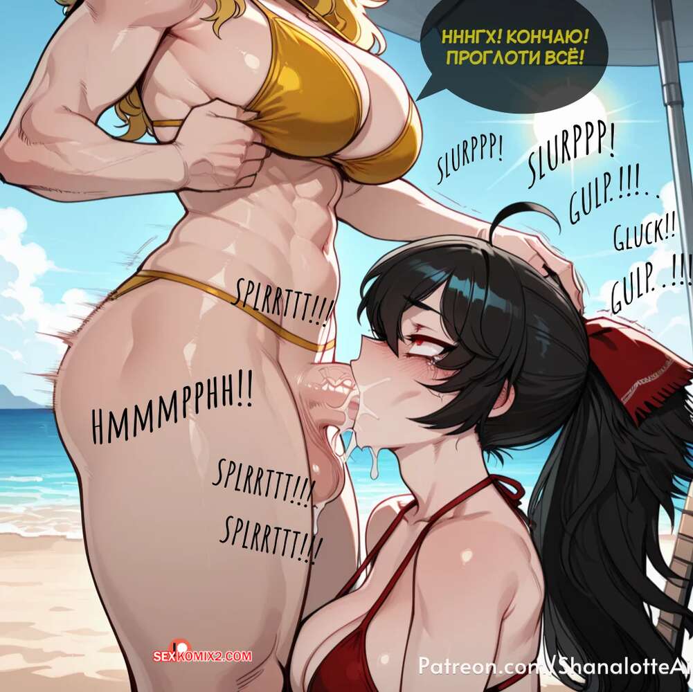 Порно комикс Ян Сяо Лун и Рейвен Бранвен. Yang Xiao Long x Raven Branwen. ShanalotteAI. Красотки отправились на пляж, чтобы позагорать. Блондиночка возбудилась и дала отссоать свой хуй горячей мамочке, после чего выебала ее как следует в пизду и задницу.