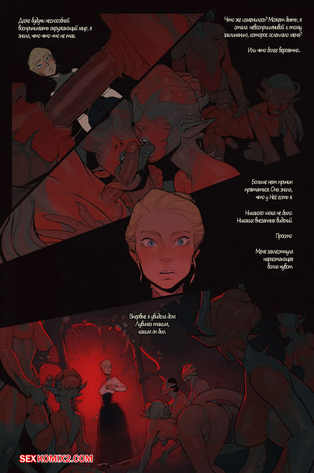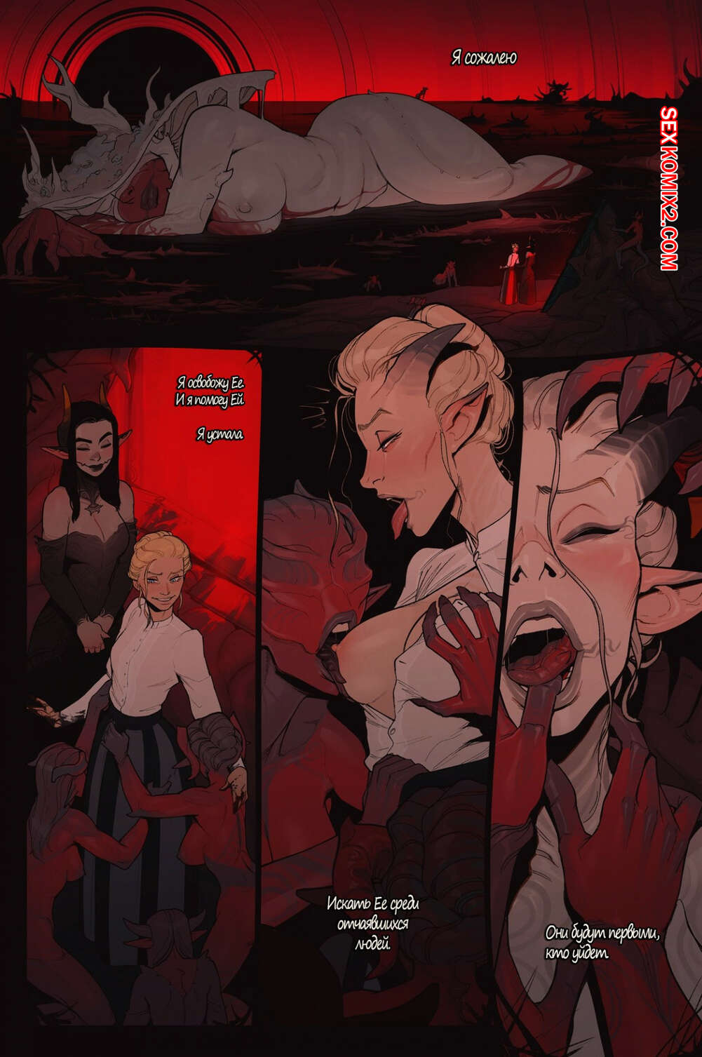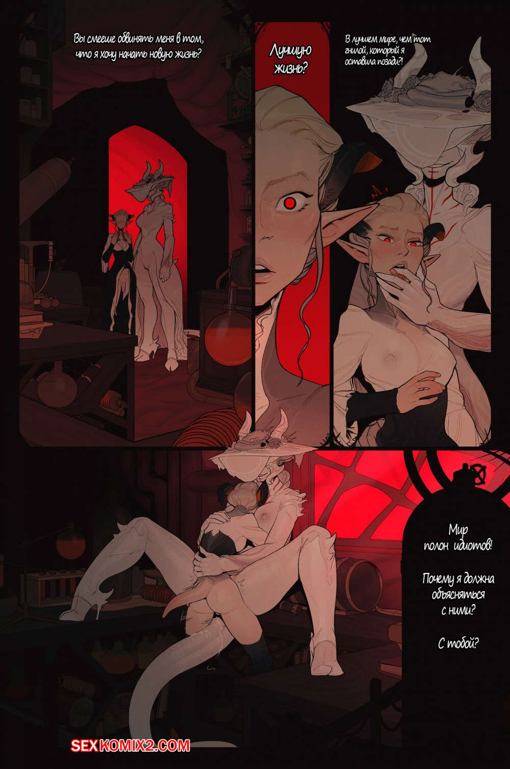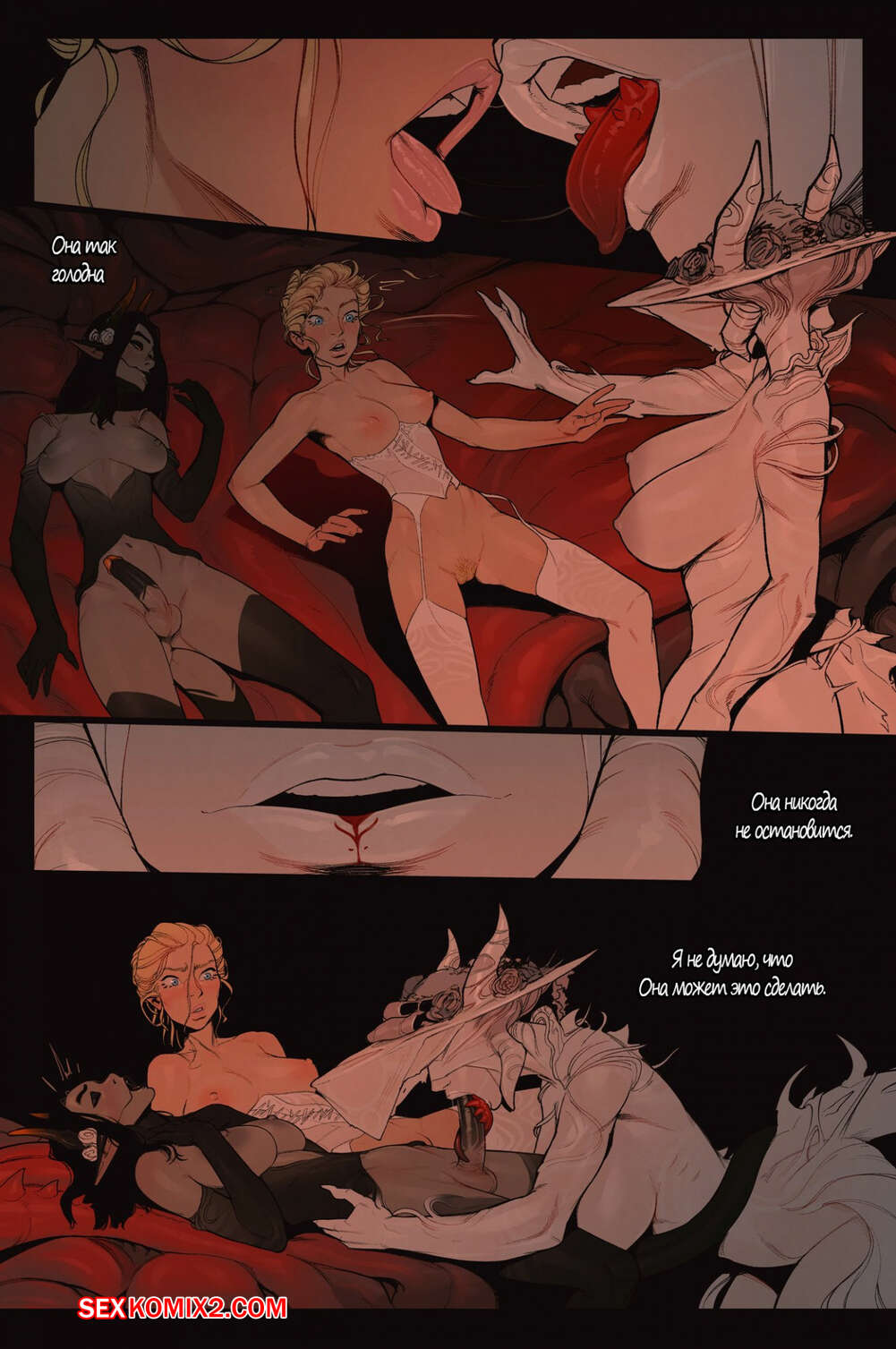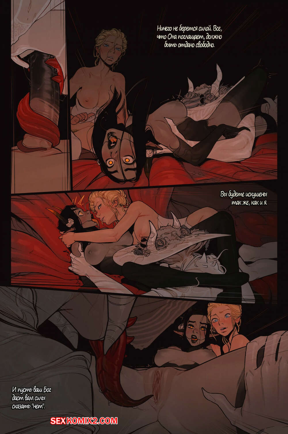 Порно комикс Приглашение. Часть 2. The Invitation. InCase Шикарная сисястая блондинка с хуем оказалась в подземном мире, где встретила госпожу со своей подданной тоже с хуем. Госпожа уложила двух красоток и приступила отсасывать у них, используя свой длинный гибкий язык, чтобы хорошенько возбудить красоток.