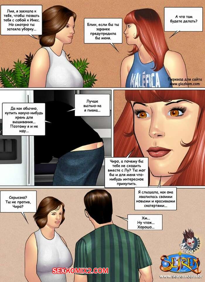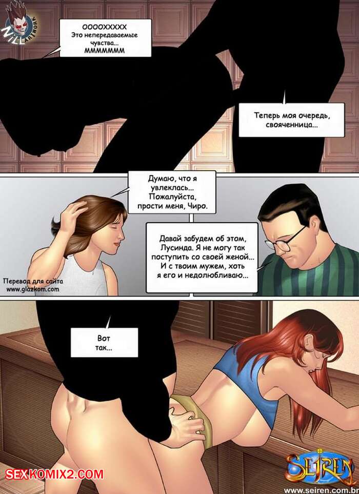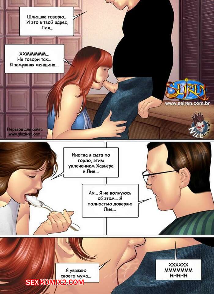 Порно комикс Приключения Лии. Часть 4 К рыжей милфе в гости приехала ее сестра со своим мужем. Пока она общалась с любимым своей сестры, наша рыжая сучка уединилась с ее мужем, и он стал к ней подкатывать. Та в свою очередь встала на колени и отсосала ему, после чего он выебал ее раком, обкончав ее спину.