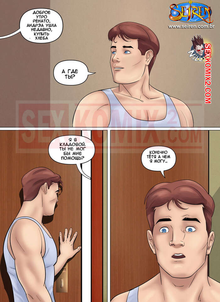 Порно комикс Семейная любовь. Часть 2. Seiren. Проснувшись утром, парень не мог поверить, что ночью он трахал свою горячую кузину. Но он еще не попал в ловкие сети его развратной тети. Она позвала его помочь ей в кладовке, а когда племянник зашел, захлопнула дверь и набросилась на него. Он не смог отказать это сексуальной милфе.