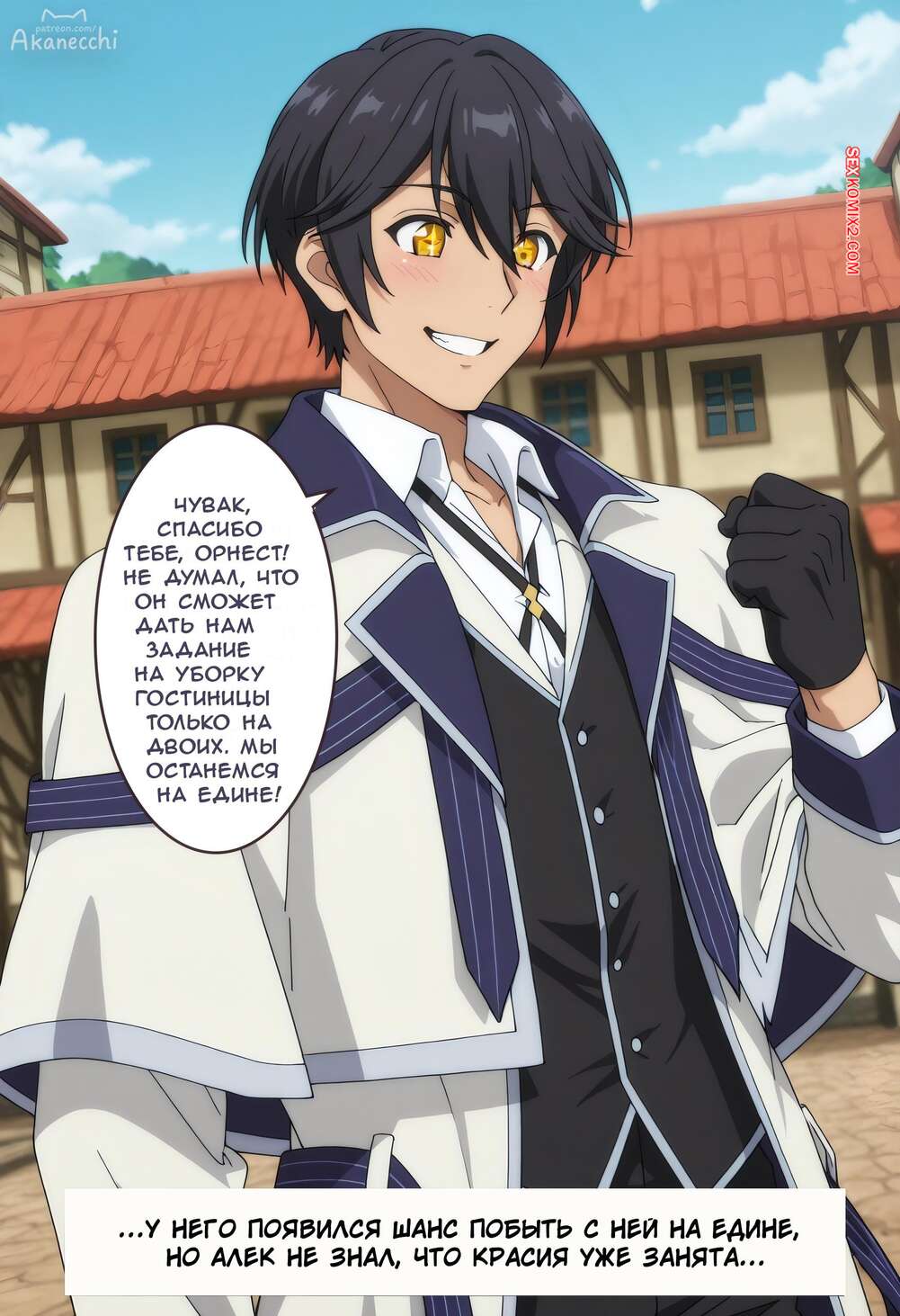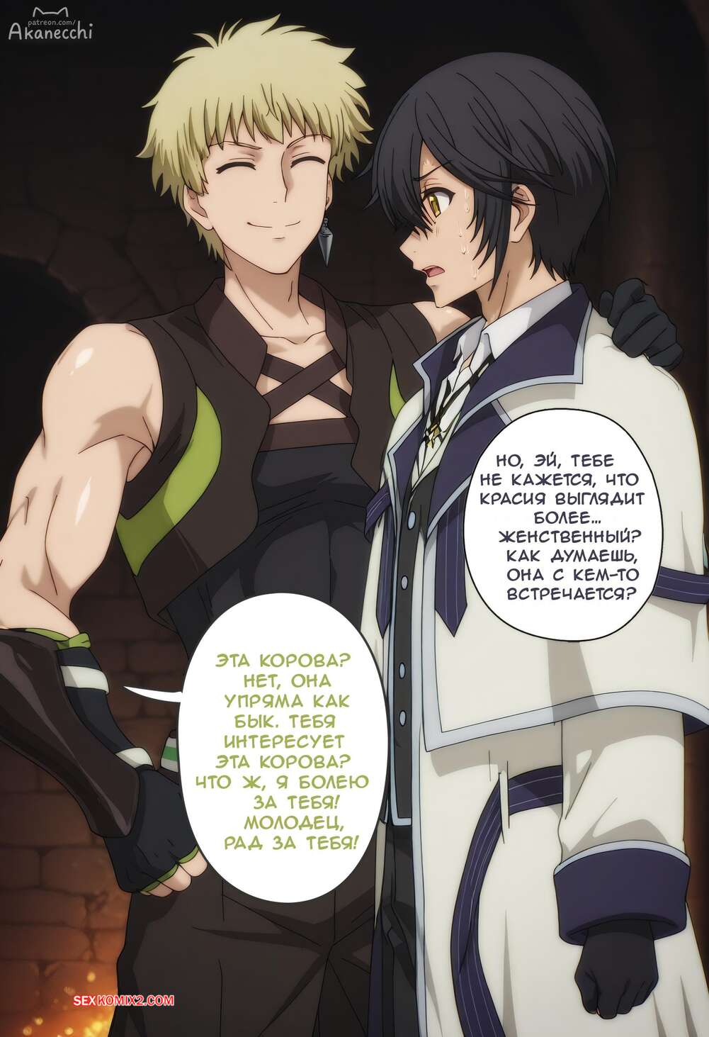 Порно комикс Красия Аннероуз, Изгнанный Придворный Маг, NTR. Часть 2. AKANE Akanecchi Горячая блондинка заигрывает со своим дружком, желая повеселиться. Красотка разделась и отсосала большой хуй парня, после чего раздвинула ножки и дала себя выебать.