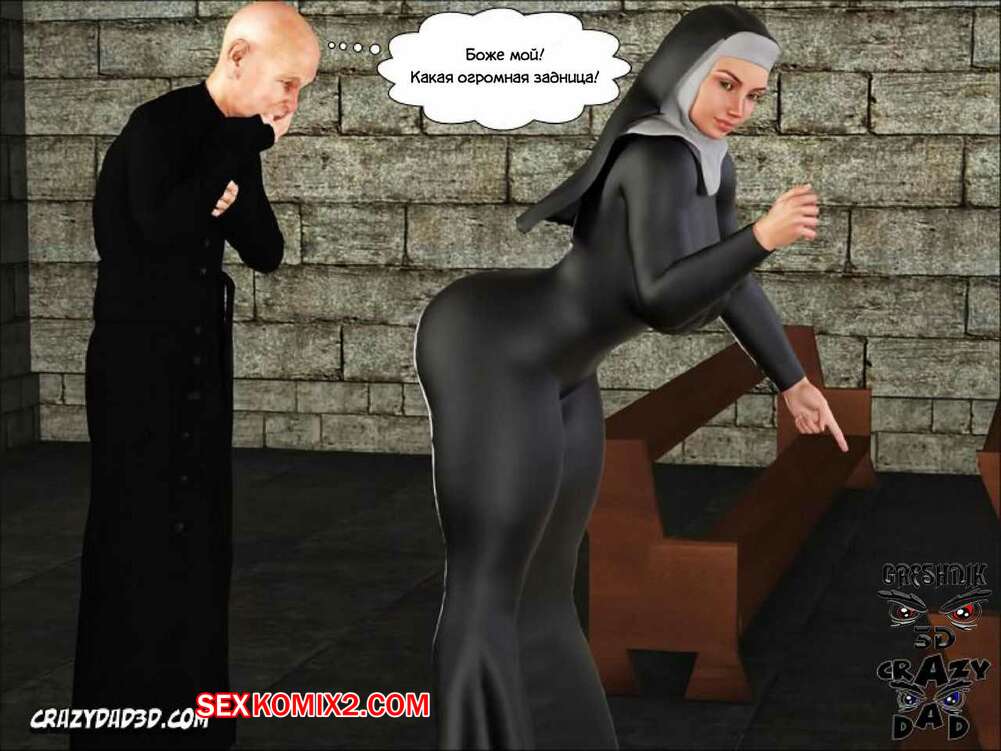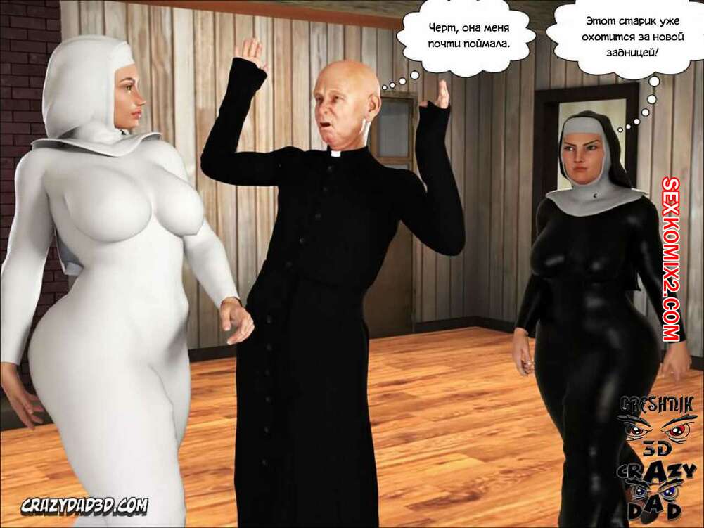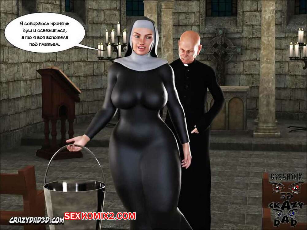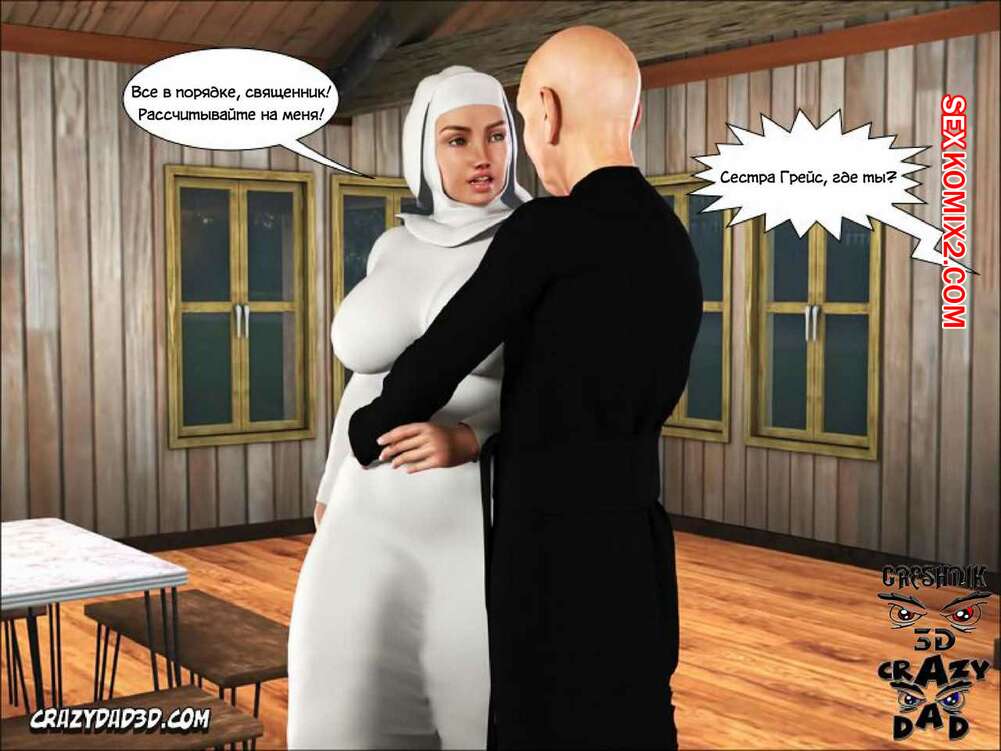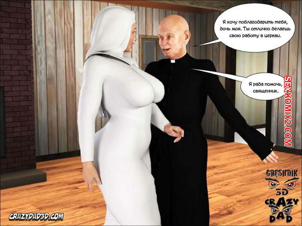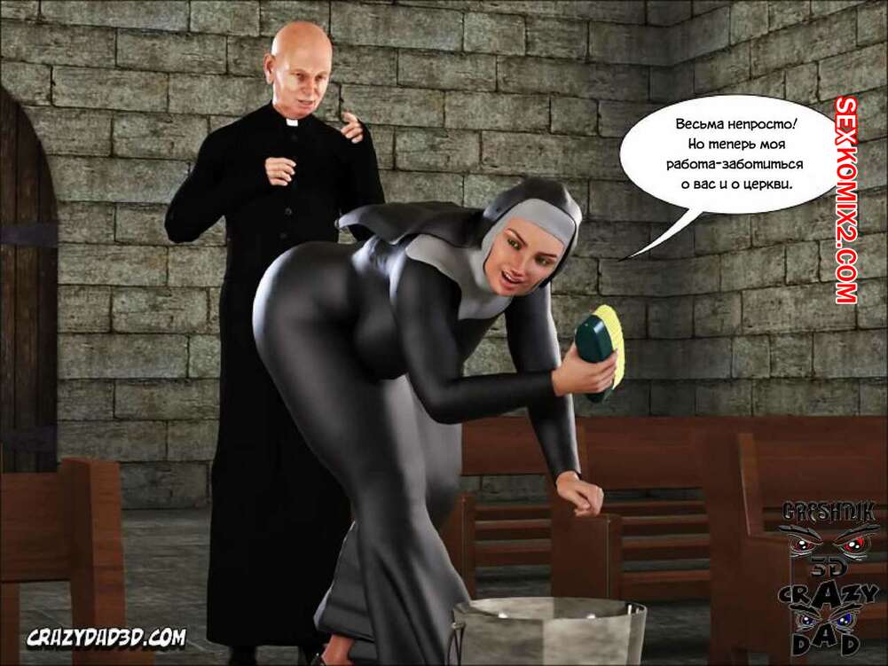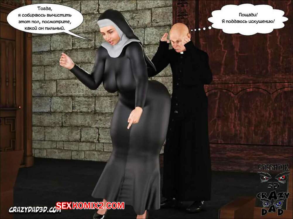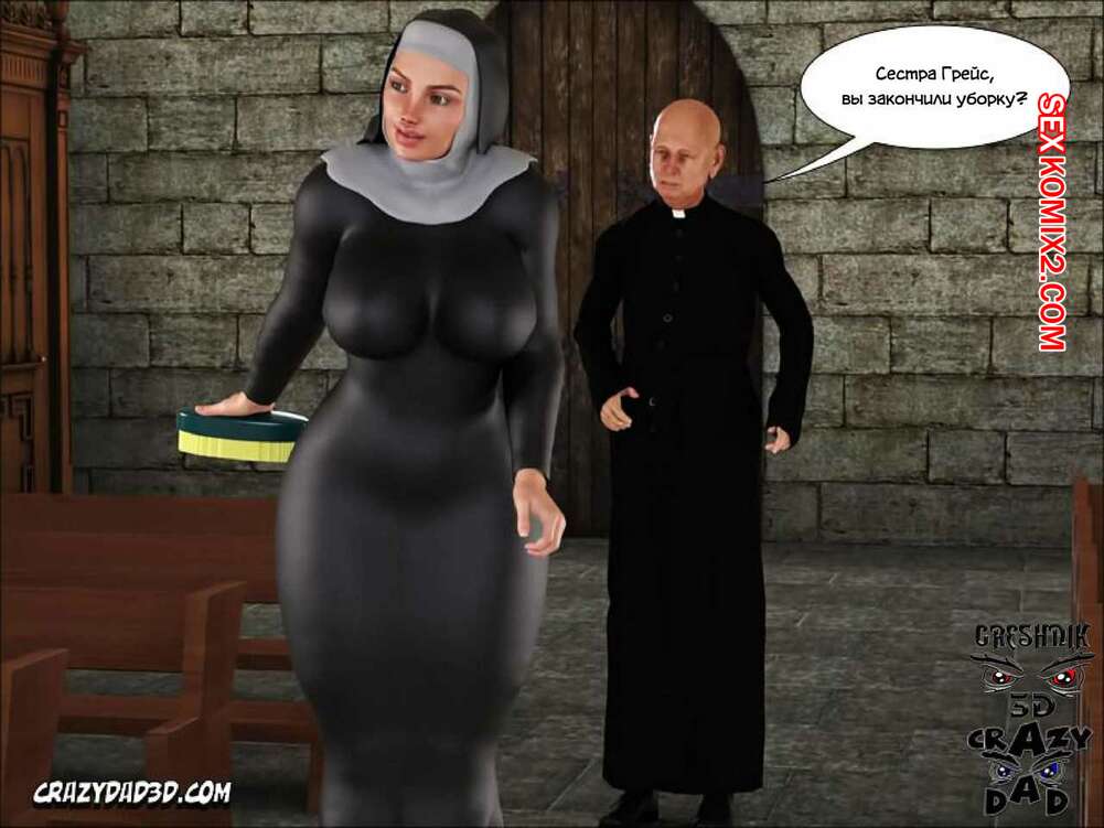 Порно комикс Монашка. Сестра Грейс Святой отец запал на свою сексуальную монашку. Он стал постоянно глядеть на ее фигуристое тело, но както он наконец решил понаблюдать сквозь щель в двери как она моется и очень возбудился, глядя на ее сексуальное тело и решил найти способ ее выебать.