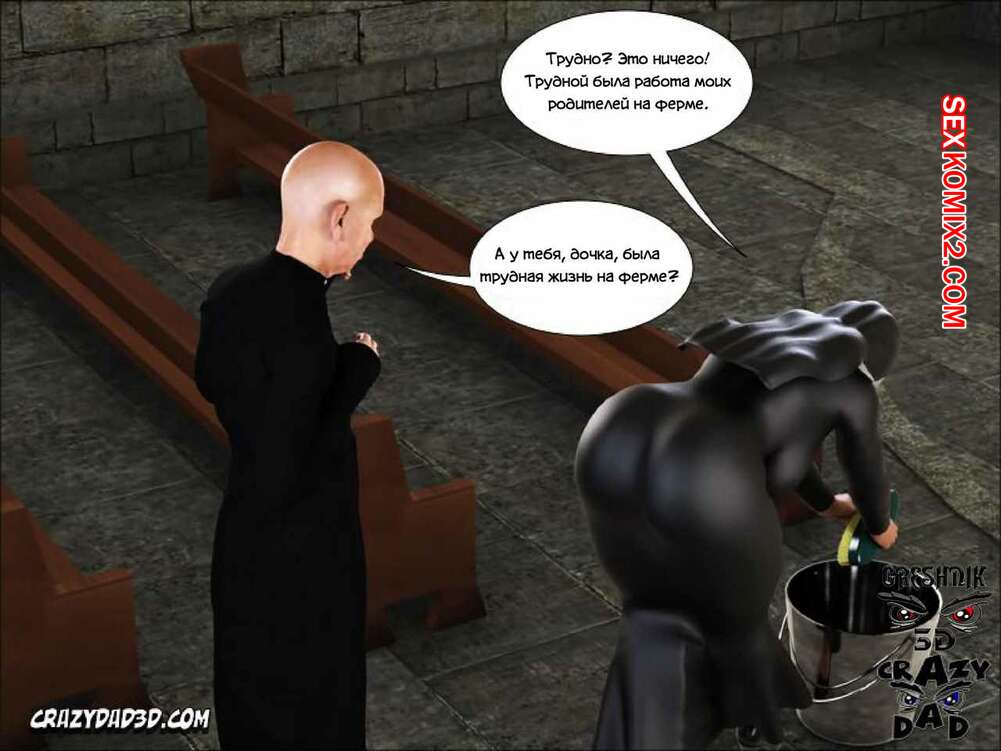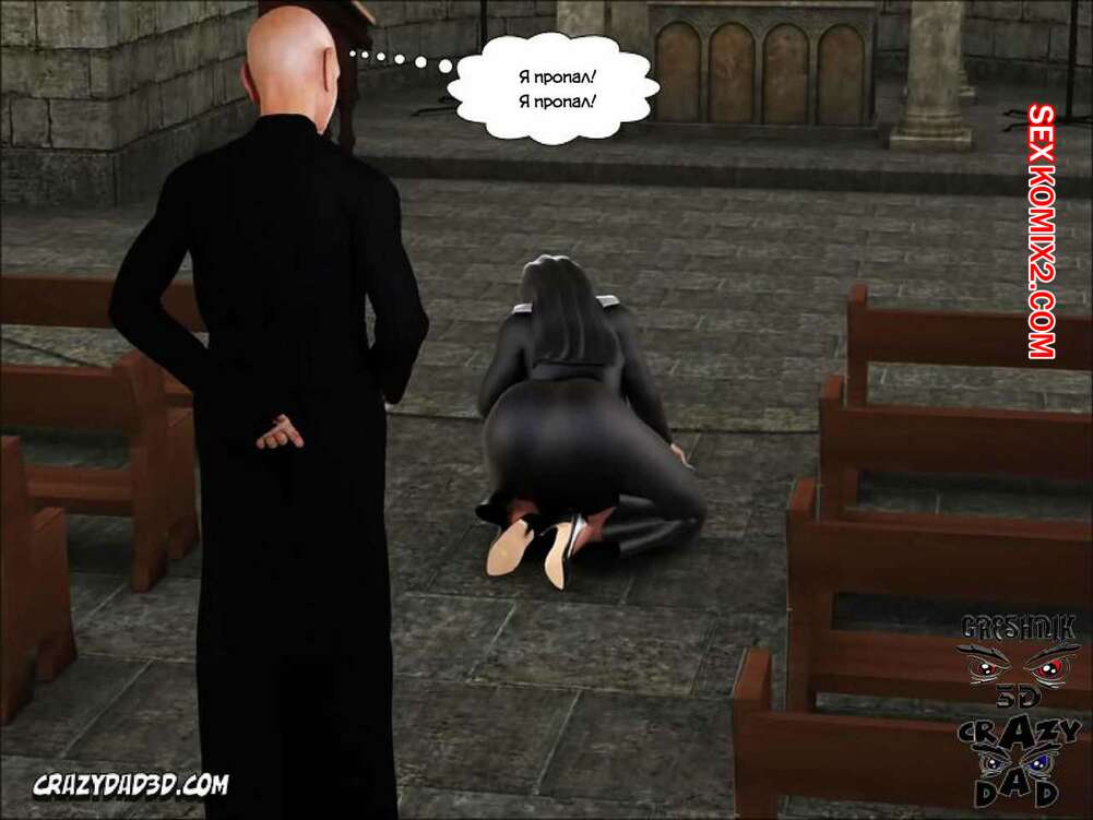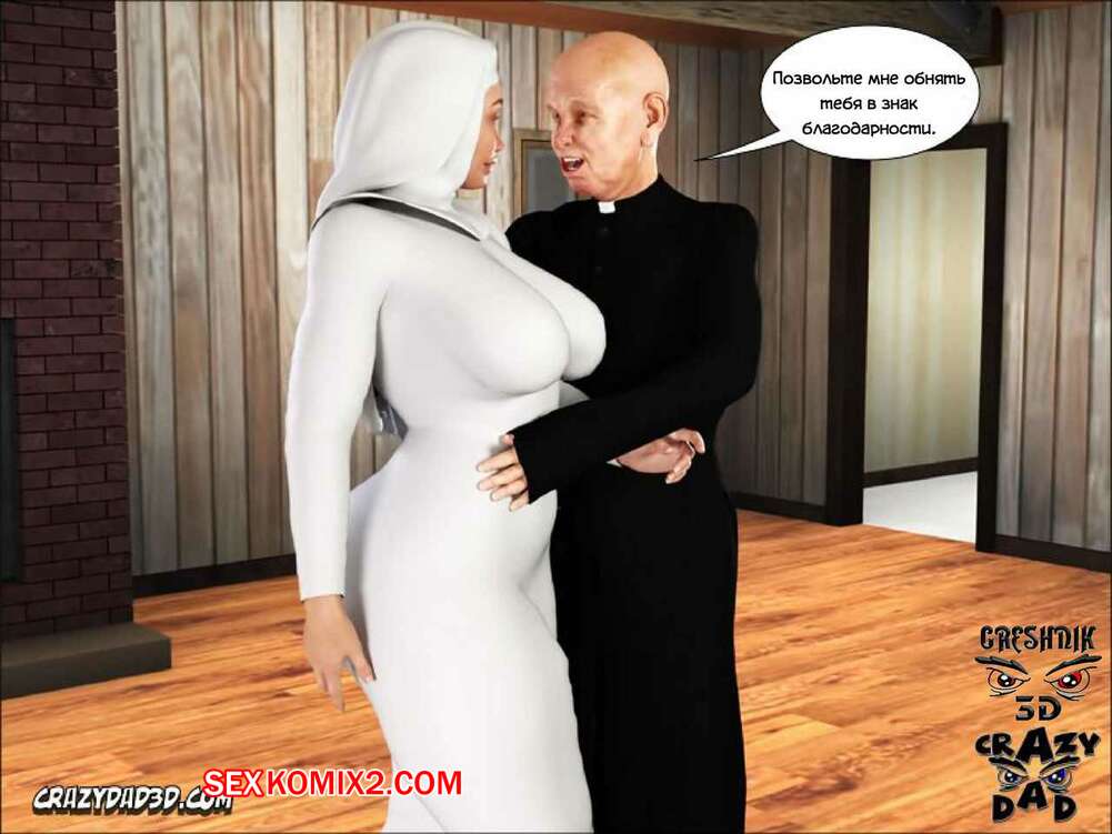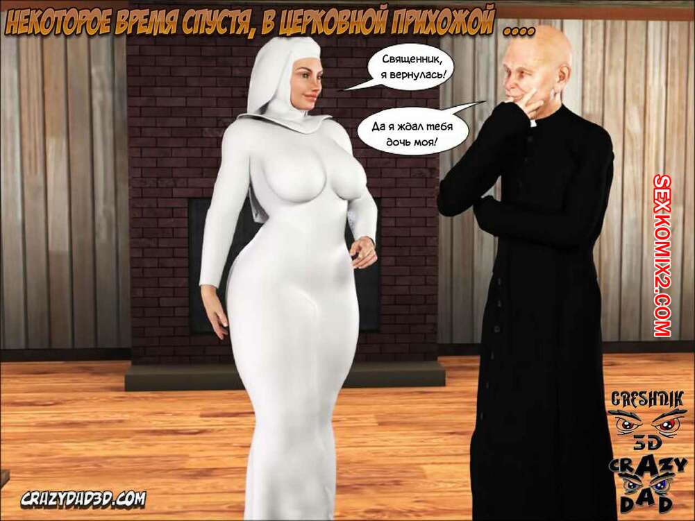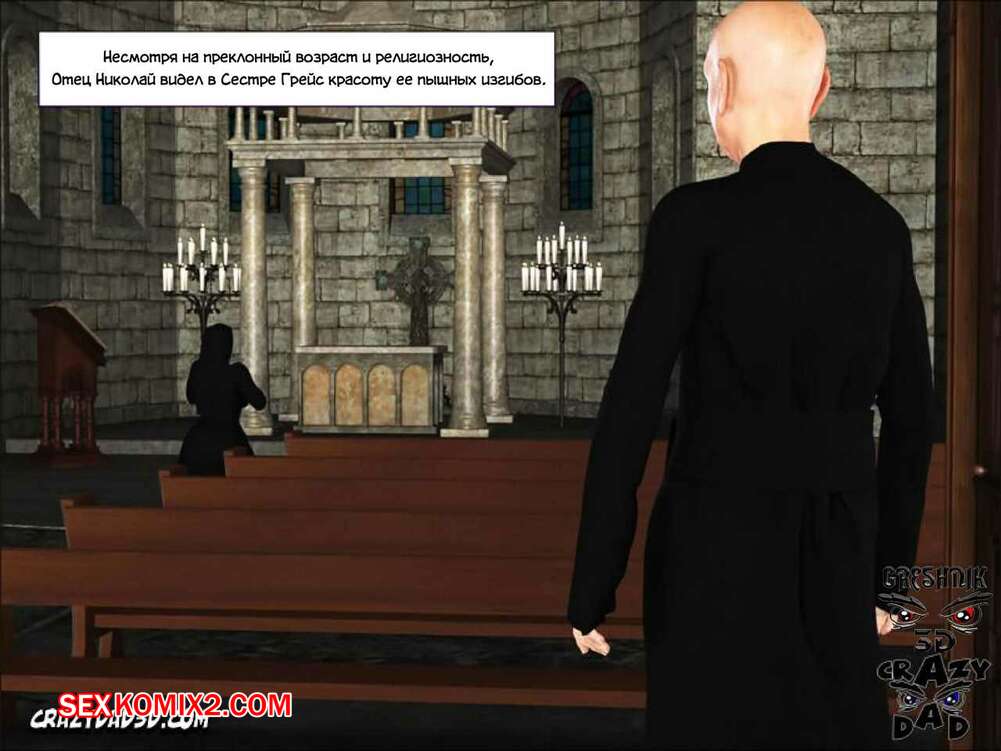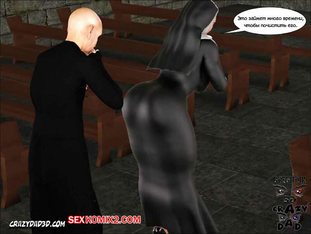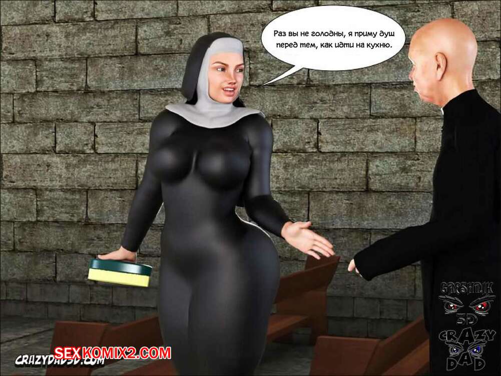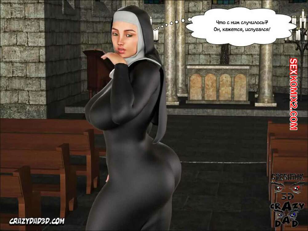 Порно комикс Монашка. Сестра Грейс Святой отец запал на свою сексуальную монашку. Он стал постоянно глядеть на ее фигуристое тело, но както он наконец решил понаблюдать сквозь щель в двери как она моется и очень возбудился, глядя на ее сексуальное тело и решил найти способ ее выебать.