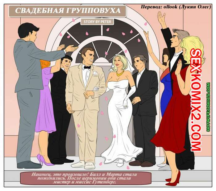 Порно комикс Свадебная групповуха Красотка блондинка вышла замуж за парня и когда они решили поебаться, к ним в комнату ворвались бандиты. Они связали мужа и решили выебать шикарную красотку, пустив ее по кругу, прямо на глазах у мужа.