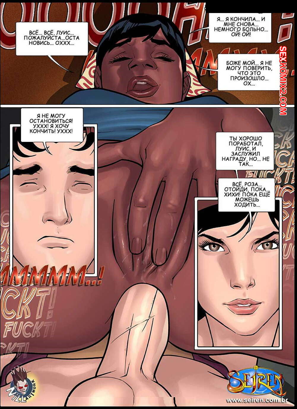 Порно комикс Горячая кузина. Часть 21 Парнишка оказался в комнате наедине с двумя красотками, шикарной брюнеткой и темнокожей дамочкой. Сучки с радостью принялись сосать хуй парня, после чего стали его умолять, чтобы он их обеих хорошенько выебал.
