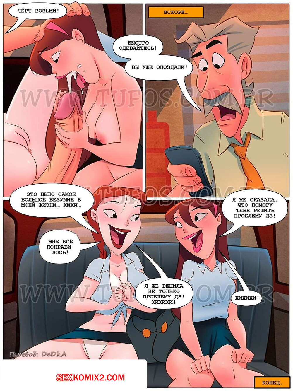 Порно комикс Похотливая семейка. Часть 36. Благоразумная развратница Доченька привела к себе домой подружку на ночевку и ее батя положил глаз на подружку. Утром, когда он стал отвозить девушек в школу, он стал подкатывать свои яйца к подружке дочки, а в итоге выебал их обеих в машине.