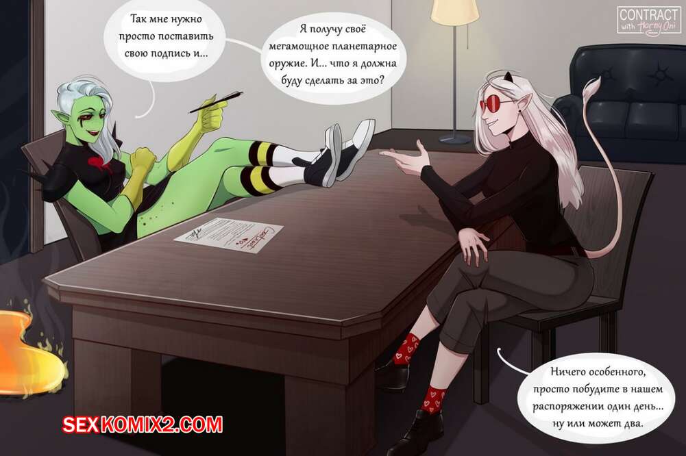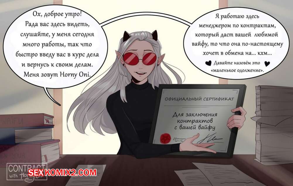 Порно комикс Контракт с Лордом Доминатором. Horny Oni Красотка блондинка решила получить огромное могущество, но для этого ей нужно было подписать контракт и попасть в руки существ на один день. Те решили воспользоваться ей по полной и поэтому хорошенько ебали ее весь день.