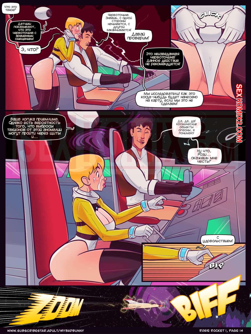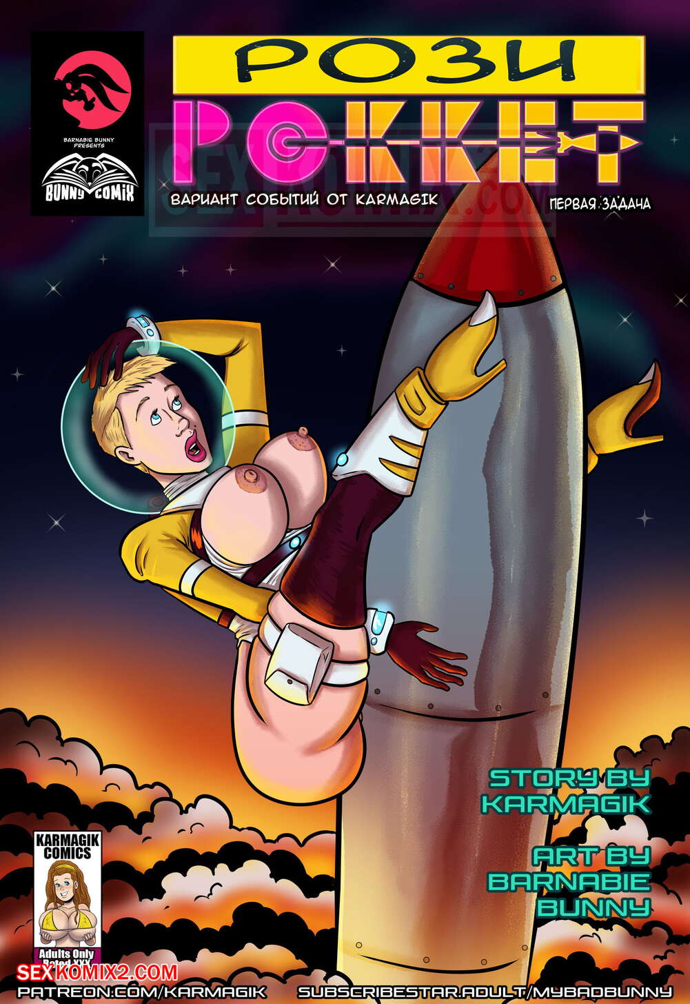 Порно комикс Рози Рокет. Rosie Rocket. My Bad Bunny. Karmagik Тяжко приходится горячей блондинку в кадетском корпусе космических войск. После изнурительно тренировки она отправляется в душ и там ублажает парней и не только людей, но и пришельцев.
